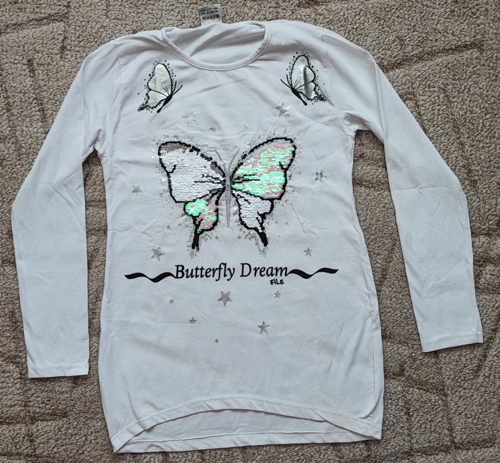 prodám bílé triko Sisley s kamínkovou výšivkou. Nošené chvíli, vyprané, naprosto v pořádku, vady jsem na něm nenašla. Vel. 152 (10-12 let) Rozměry: celková délka zad 49 cm, šířka pod průramky 38 cm...