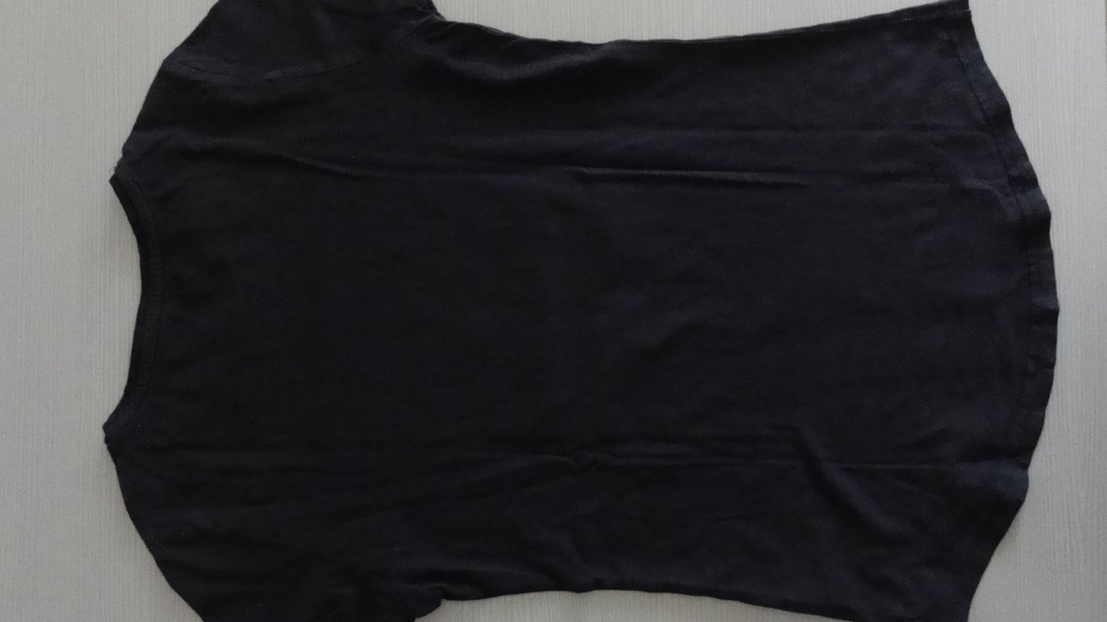 TMAVĚ ŠEDÁ GRAFITOVÁ BARVA - VPŘEDU APLIKACE - RAMENA OTEVŘENÁ - PĚKNĚ TO VYPADÁ. VELMI PŘÍJEMNÝ MATERIÁL 50% BAVLNA A 50% MODAL. NOŠENÉ - BEZ VADY - MOC PĚKNÉ - TROCHU VIDĚT NOŠENÍ NA APLIKACI. ZN...