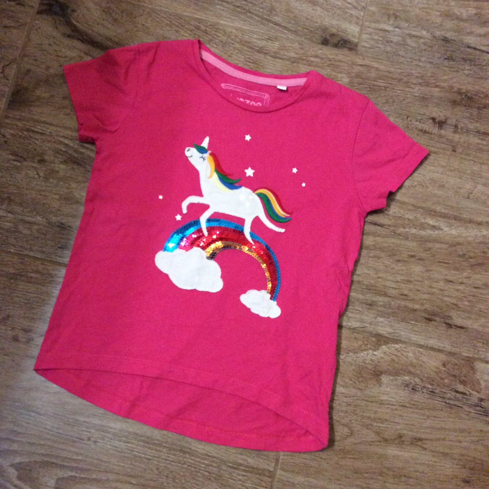 - krásné bavlněné tričko s jednorožcem a duhou s barvenými flitry
