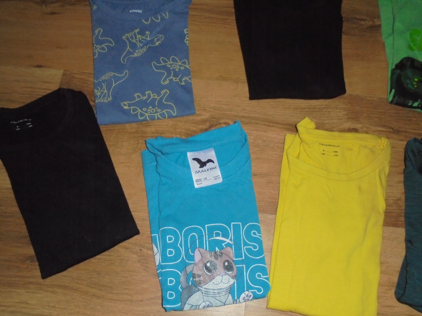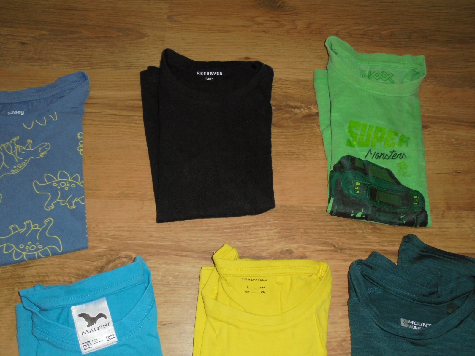 Trička, vel. 128/134, vše nošené, vady jsem nenašla, jsou stále pěkné, čtyři jsou jednobarevné, tři s obrázky, zelené s autem má trošku odřený obrázek od praní, ale jinak jsou všechny pěkné. Cena je za vše. Poštovné a balné: balíkovna 80,-Kč, zásilkovna 90,-Kč.