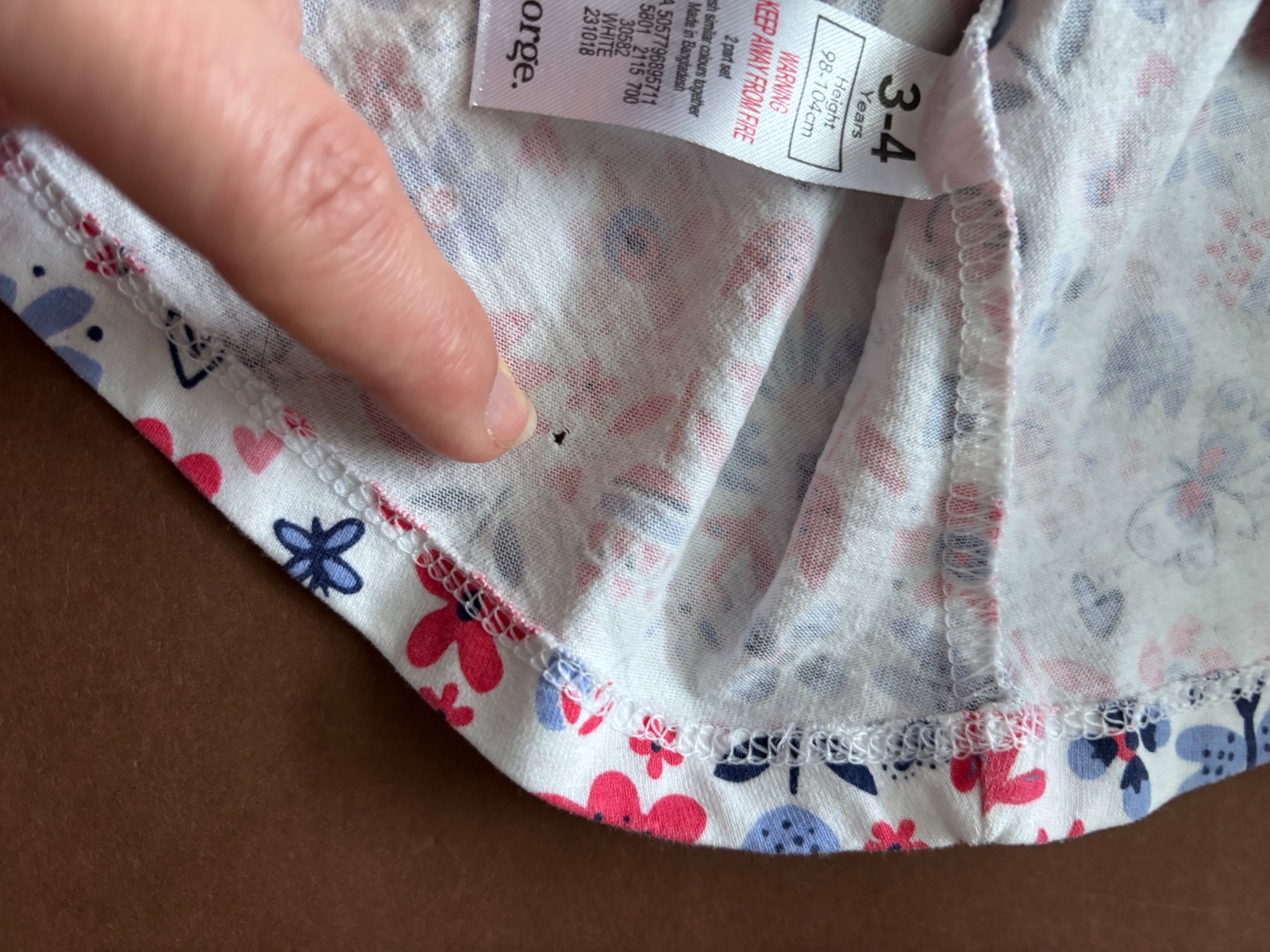 DOBRÝ STAV - žmolíky na lemech, spíš na donošení, na doma, výrznější žmolík....u takovéto stavu oblečeni je vždy zohlednění v ceně .