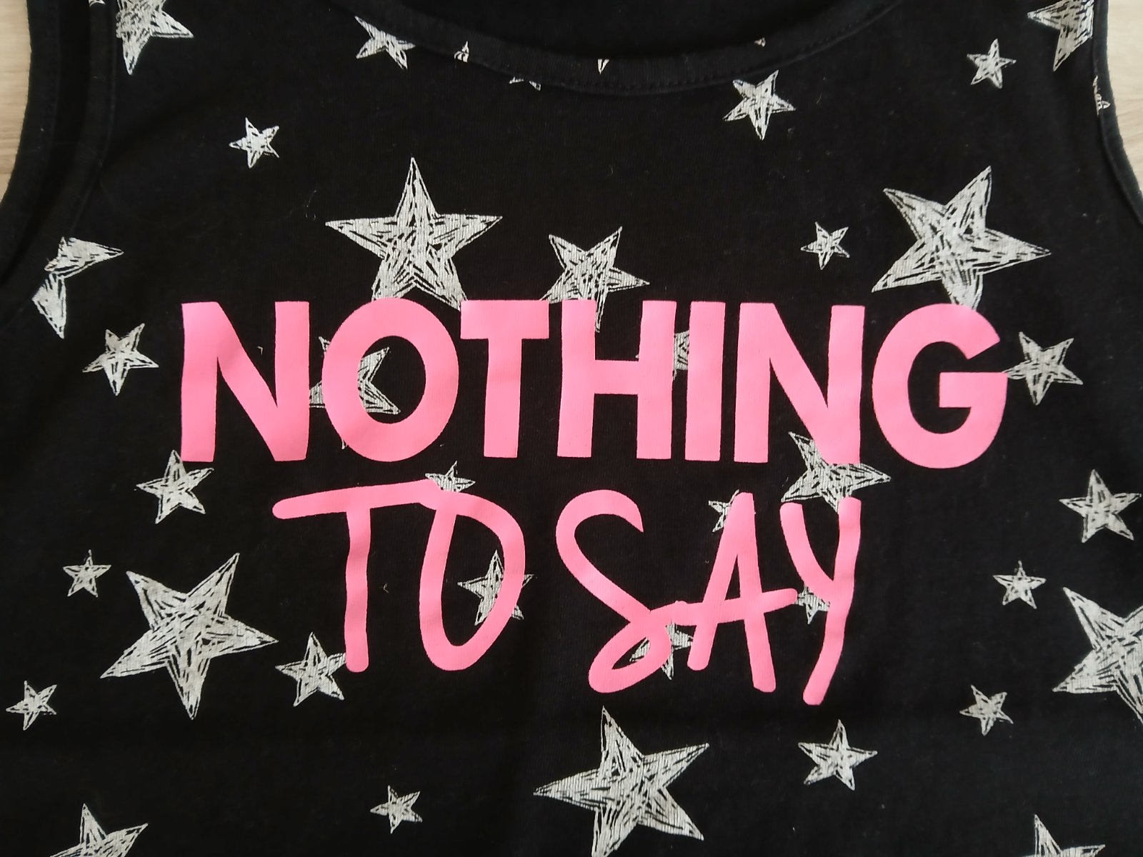 Čierne tričko s potlačou na prednej strane, zn. Takko, veľk. 134/140 ( 8-10 rokov), dĺžka - 50cm. Vo veľmi zachovalom stave.