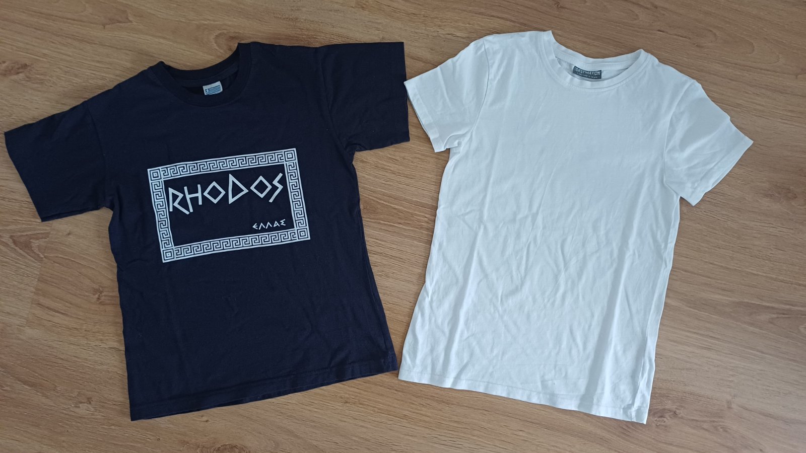 Pekne, obe pidi chloupek. Obe 100% bavlna. Modre z Recka. Delka od krku 50, sirka 37. Bile delka od krku 53,5, sirka 35. 30,-/ks.