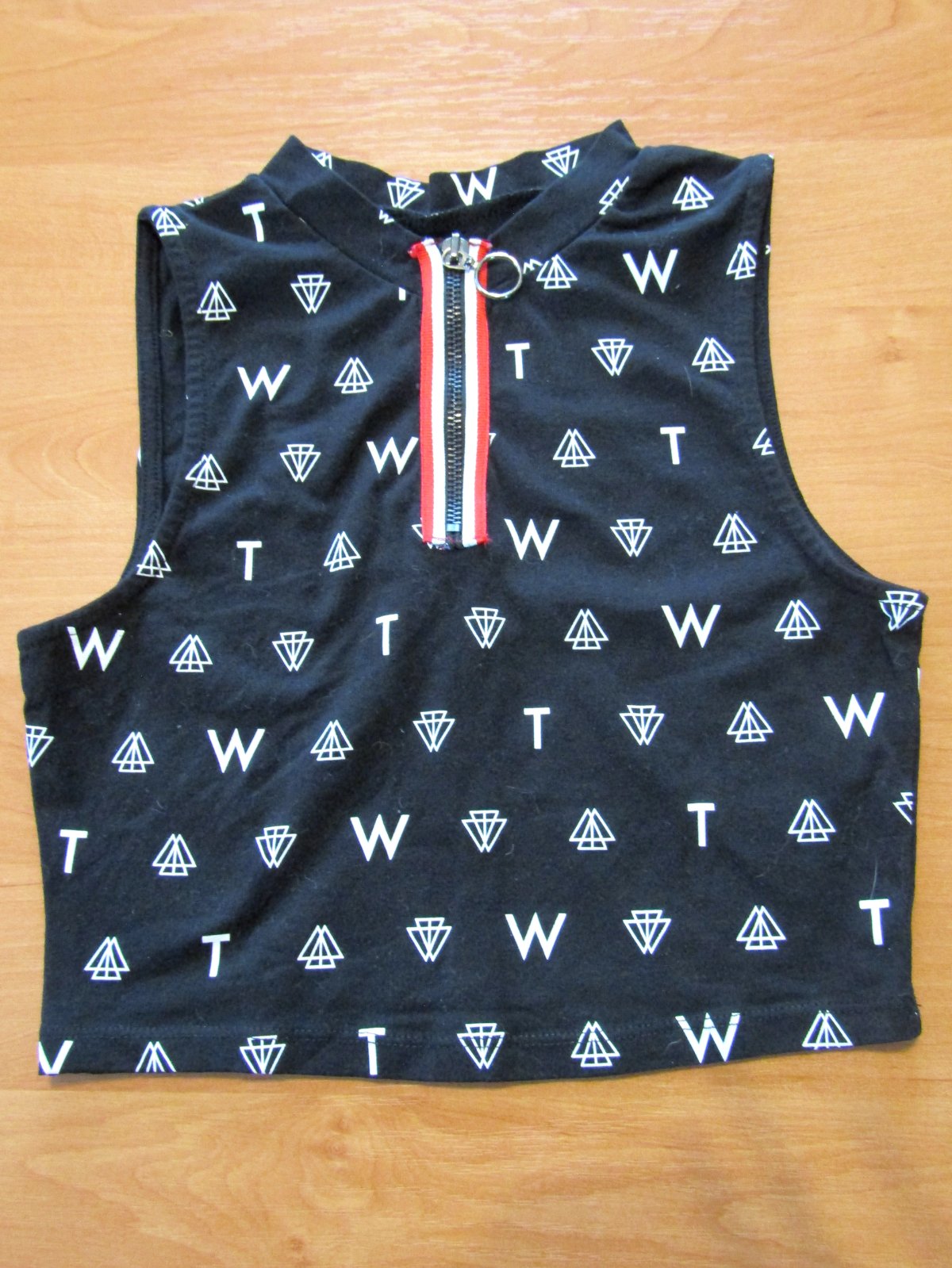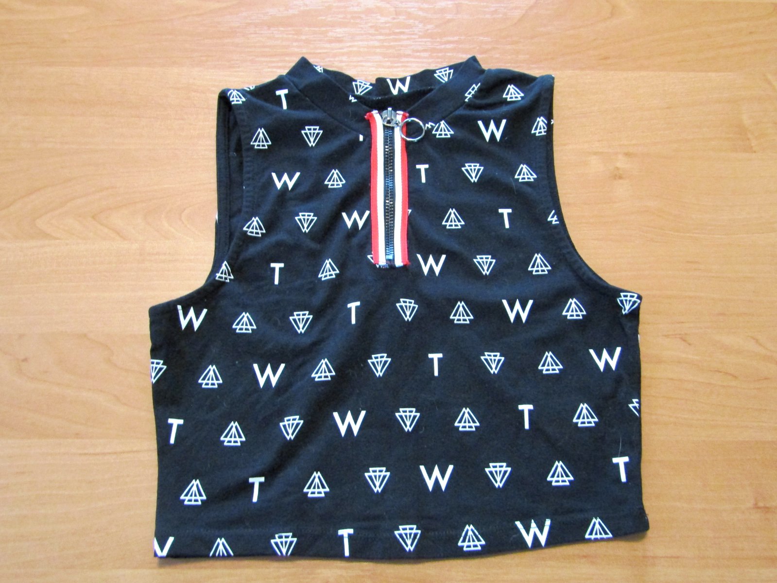 Prodám dívčí triko černé,délka 50cm a šířka 2x36cm,je z pružné bavlny,na přední díle na knoflíčky a zavazovačku,nošené málo,bez vad,cena 35kč a triko bílo - zeleno - čené,délka 50cm a šířka 2x36cm,...