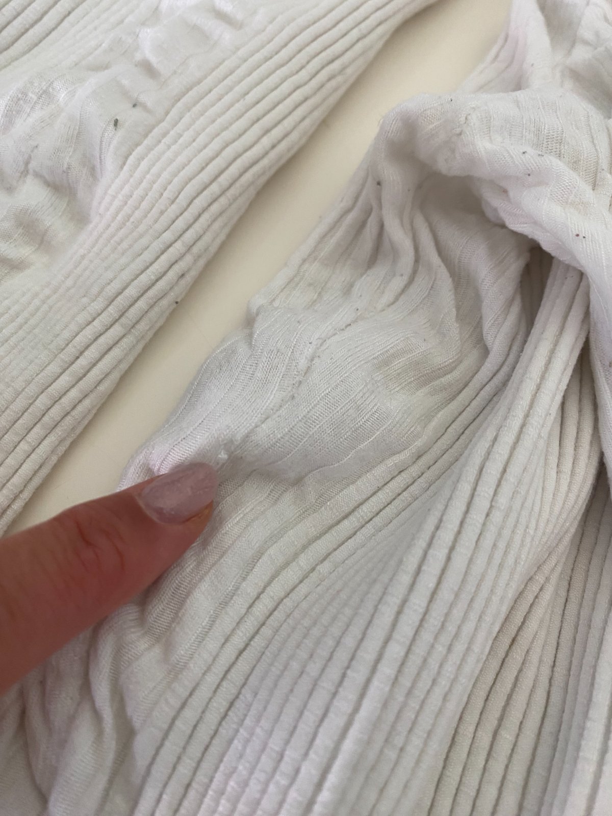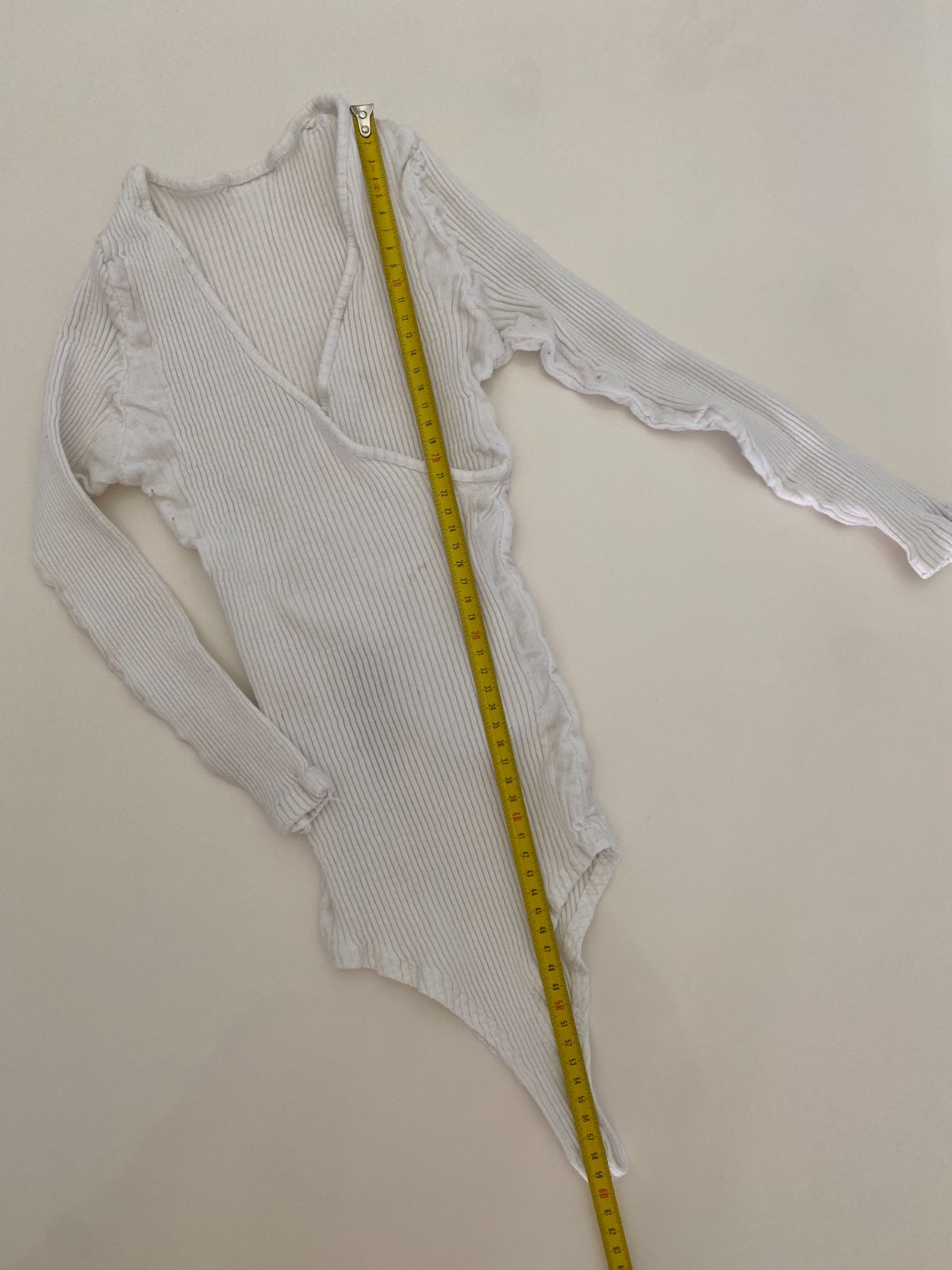 Velmi pružný žebrovaný materiál: 95% viskóza, 5% elastan (na fotkách jsou zcvrklá, ale přizpůsobí se až do velikosti menšího M).