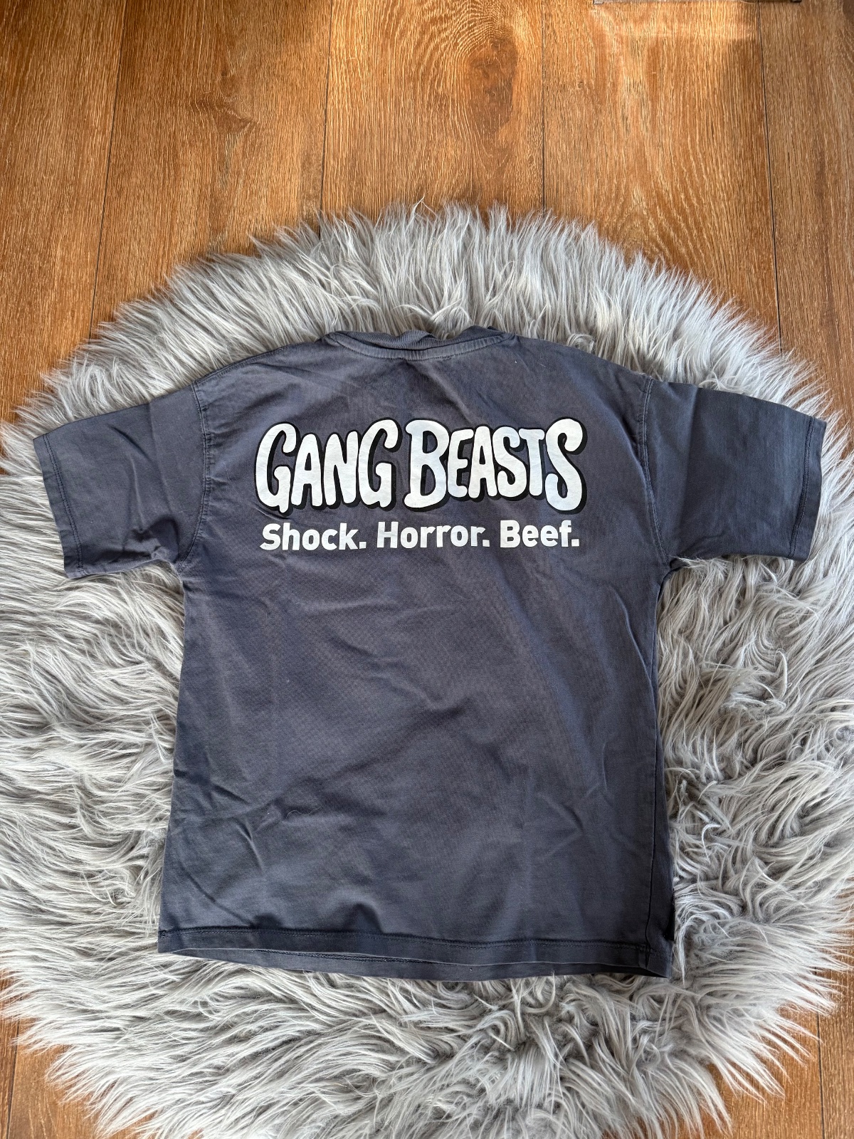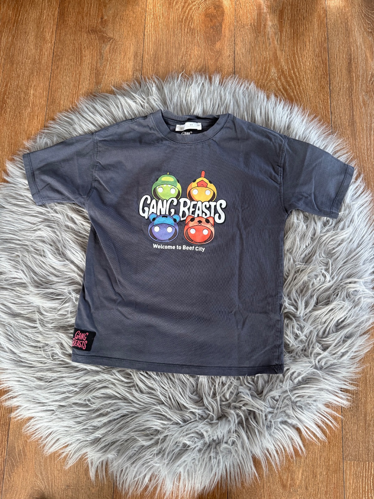 Tmavosivé triko s farebným motívom graffiti. 100 % bavlna. Dĺžka 52 cm, šírka cez hrudník 38 cm. Vo výbornom stave. (&)