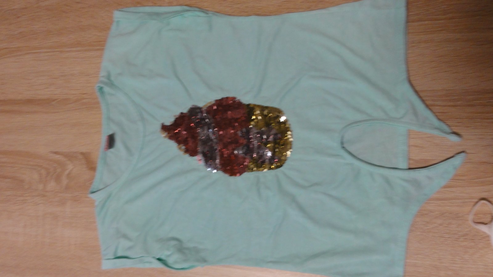 hráškově zelenkavé letní tričko, slabá bavlna, ideální do horka, délka 46 cm, vel tedy cca 134/140, běžné známky nošení. Zn. Miss e-vie.