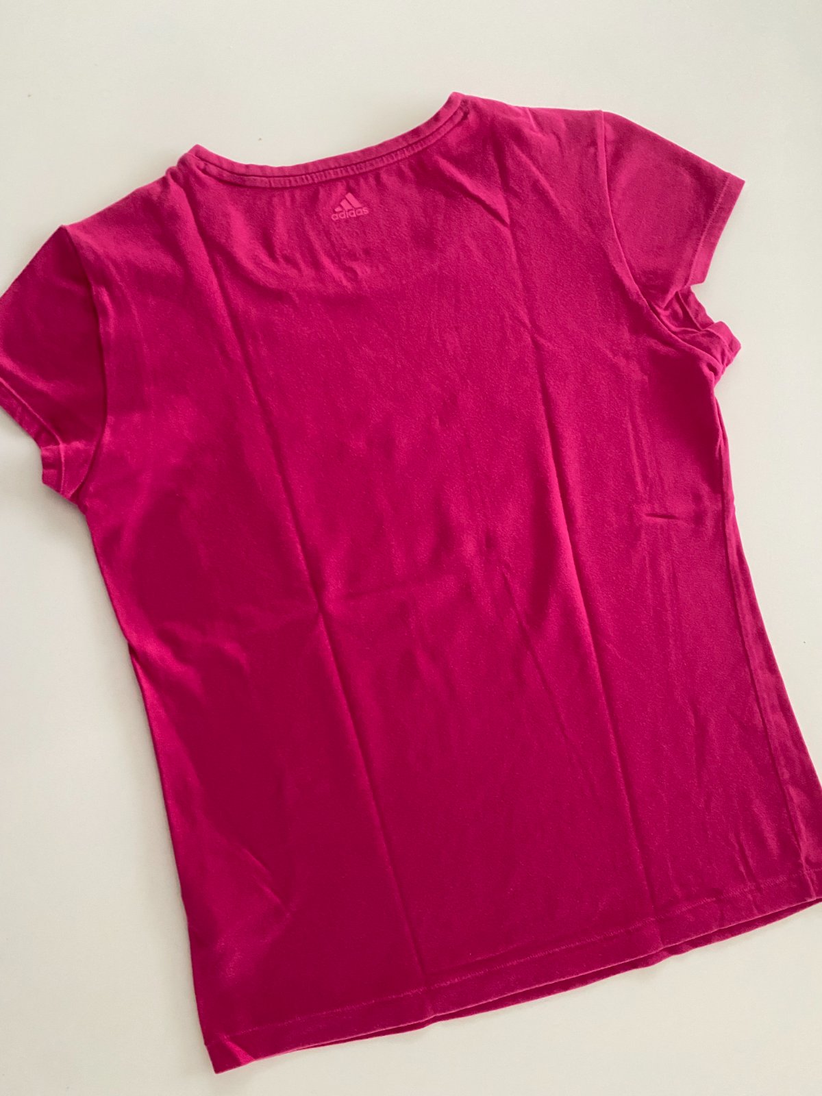 Krásné dámské tílko, top v sytě růžové barvě a stříbrným nápisem Adidas na předním díle. Velmi příjemný materiál - 95 % bavlna a 5 % elastan. Velikost je uvedena USA M, D 40. Délka 54,5, šířka 40 c...