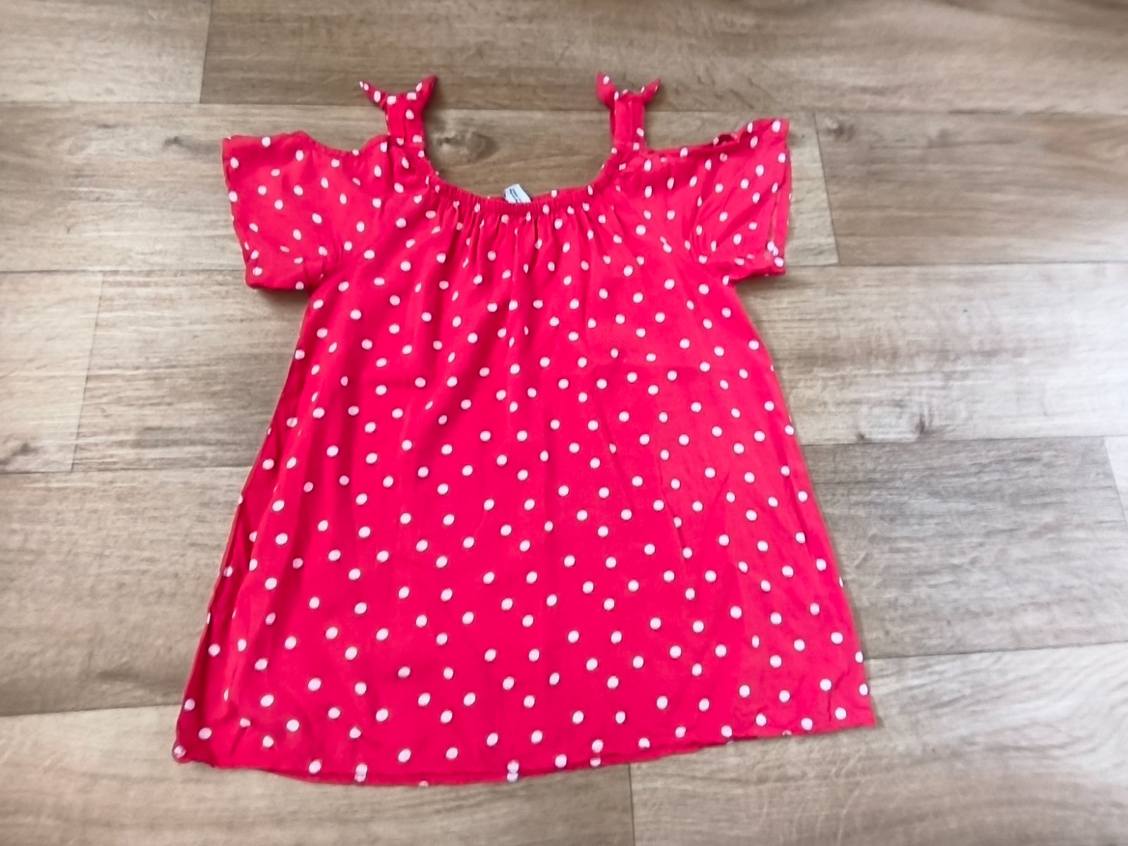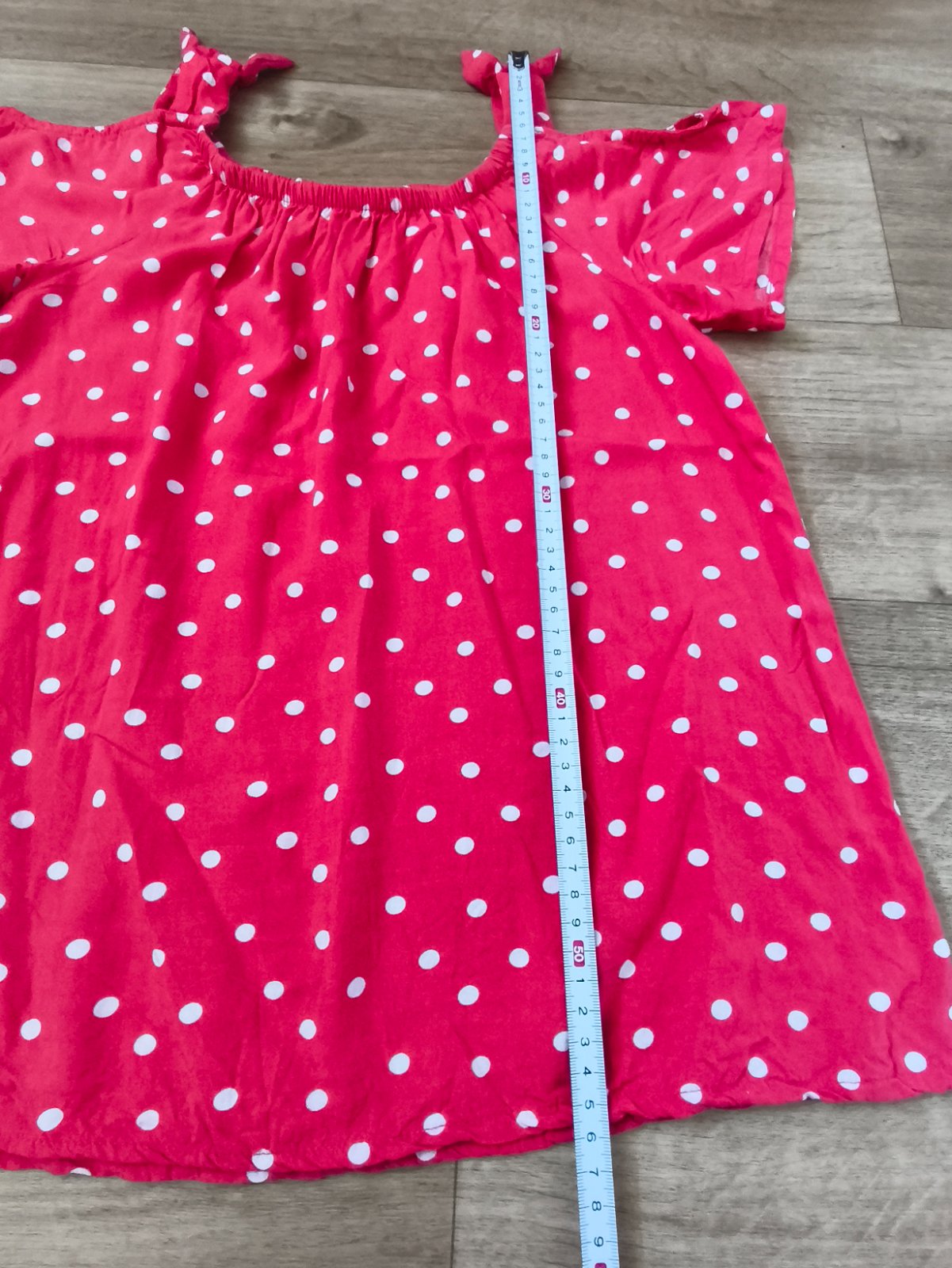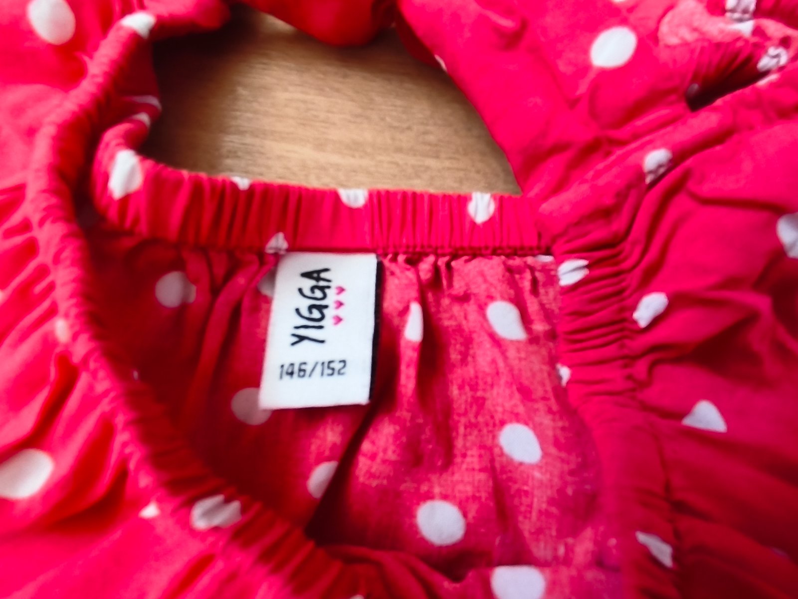 Červený top s bílými puntíky zn. Jigga, velikost 146/152 - rozměry na fotkách.