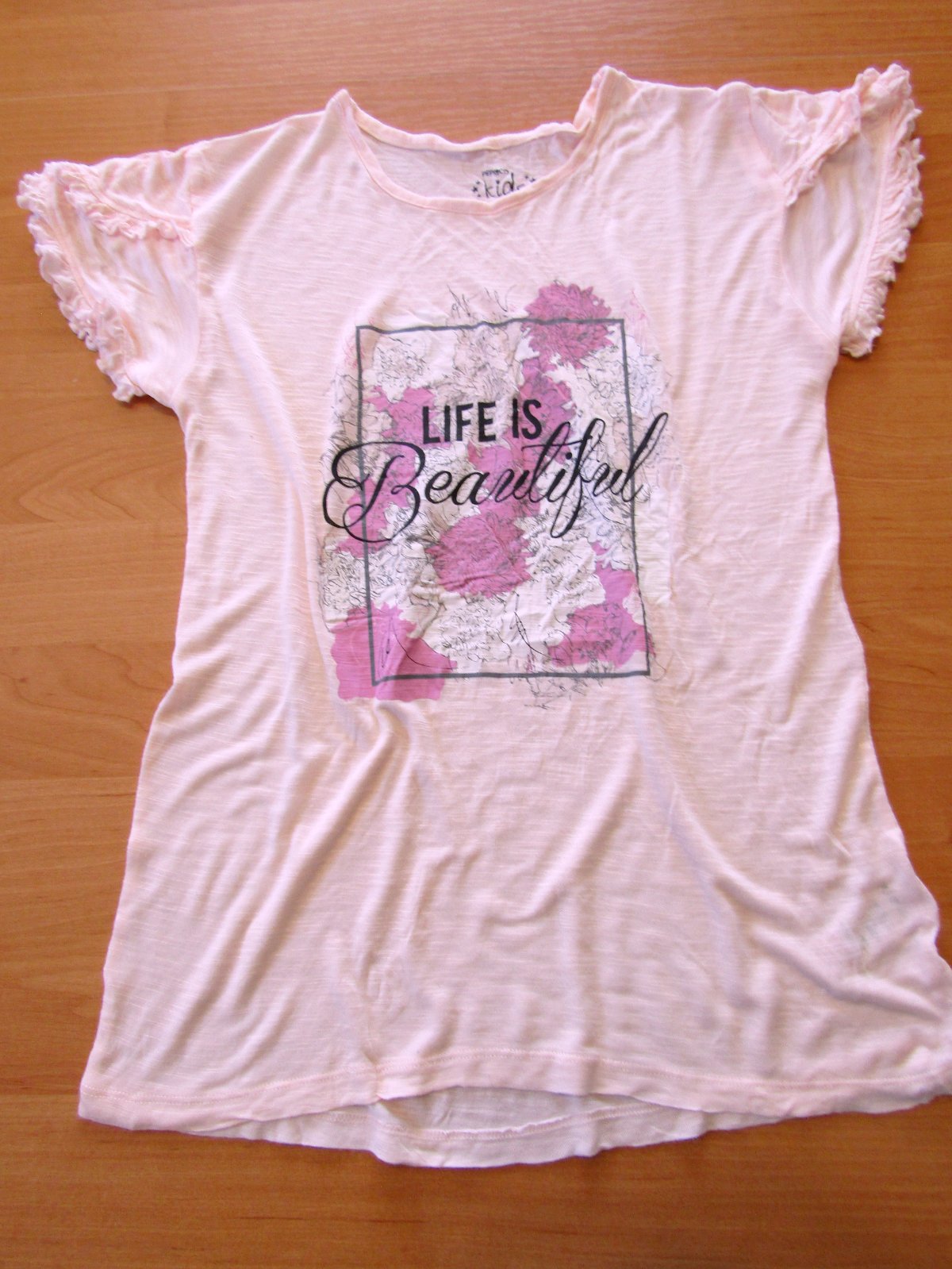 Prodám pěkné tričko. Velikost uvedena 146/152. Míry: d - 55 - 60, š - 40. Běžné známky nošení.