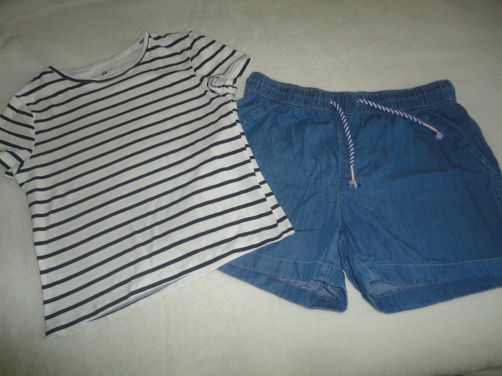 Pouze 1x prané, velmi příjemné, lehce projmuté pruhované triko, materiál 95% bavlna, 5% elastan, d. 45cm, š. v průramku 37cm, pas 35cm, hezky pruží