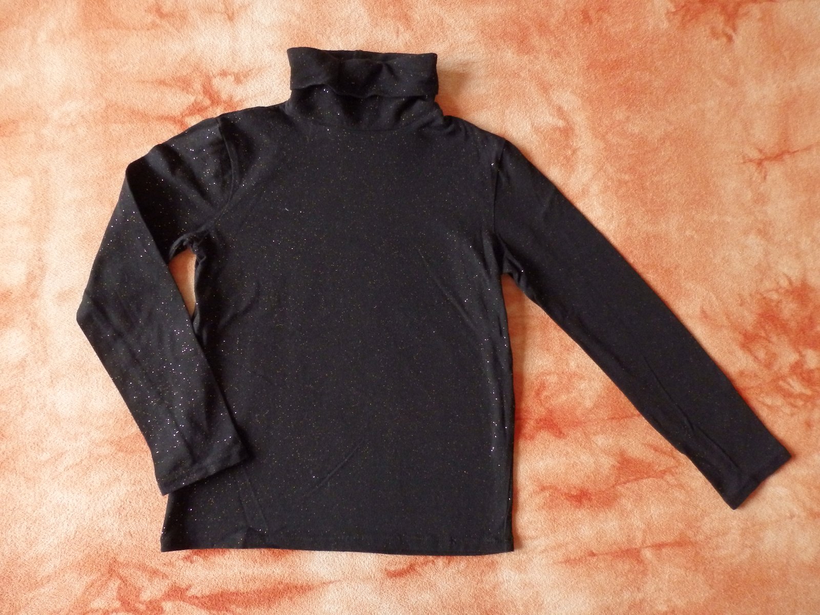 Pěkný černý roláček se zlatými třpytkami, v dobrém stavu. Velikost 134/140.