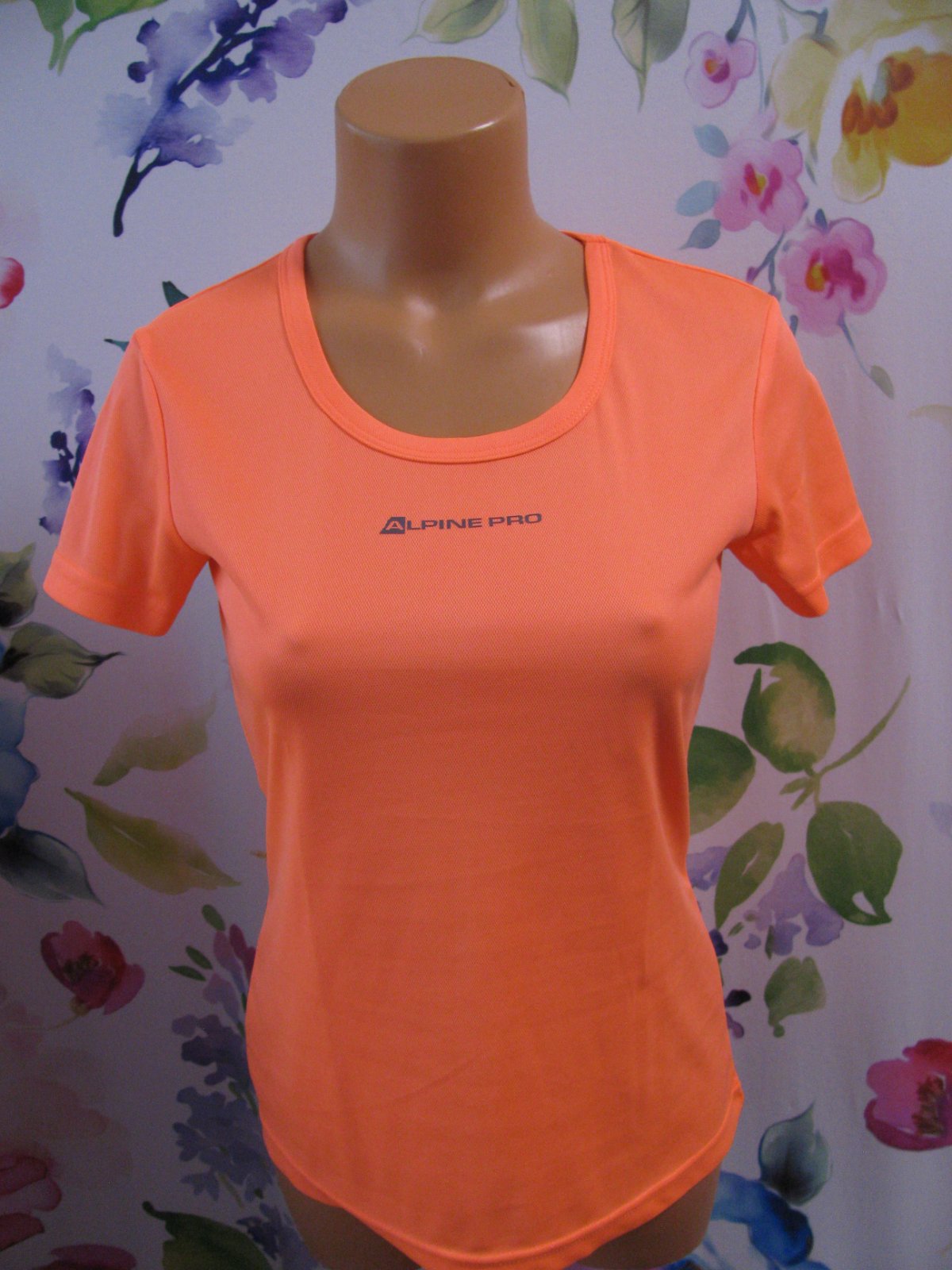 Luxusní neonové, lososové tričko, COOL DRY. Běh, fitnes, turistika, volný čas. 100% polyester.