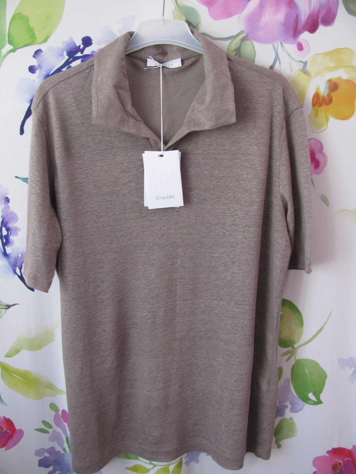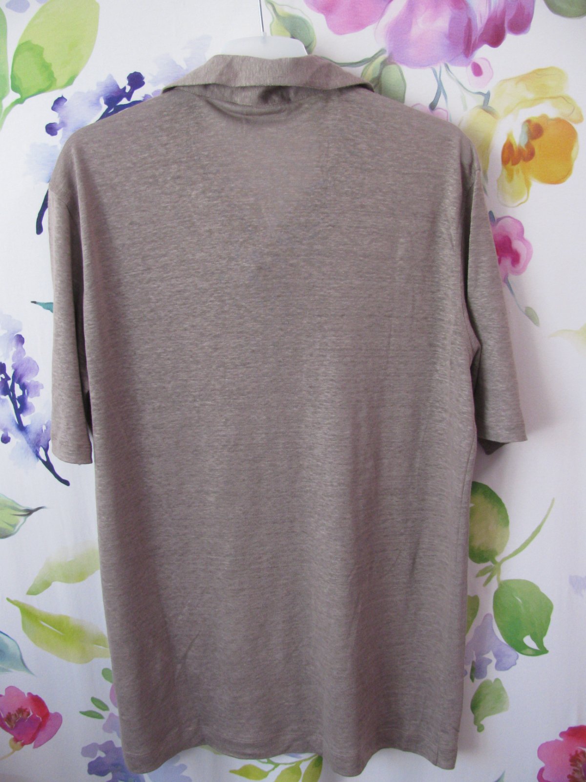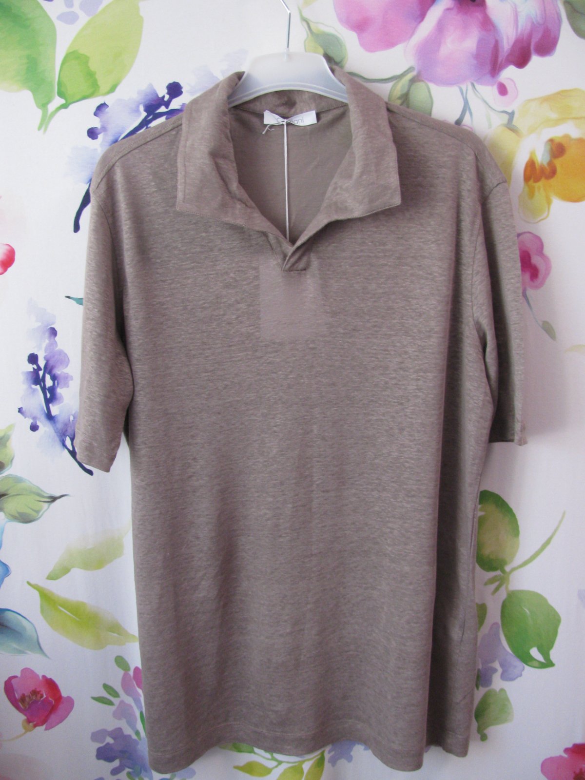 Polo triko bez knoflíků z jemného lnu a bavlněného úpletu, barva reálná. 100% len .PC 3864kč. Nevhodný dárek, malá velikost. Musím prodat s velkou slevou. 54- Italská vel,,,,XL-česká vel.