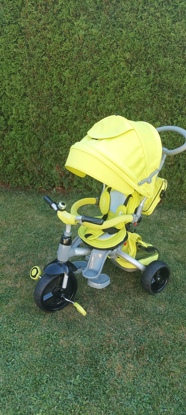 Stav viz foto. Barva neonová. Nastavitelné nohy. Sundavací stříška. Kapsář a vak na hračky. Může vézt řidič nebo řídí dítě. Vysoká PC