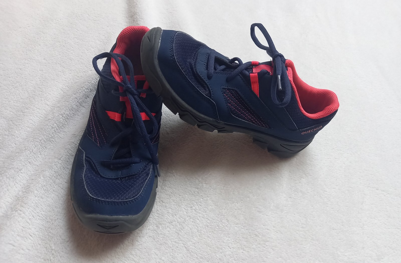 Dětské kotníkové turistické boty Quechua na chůzi po nenáročných turistických pěšinách. Lehké turistické boty s dobrými protikluzovými vlastnostmi, ve kterých může dítě běhat kdekoliv. Velikost 35 ...