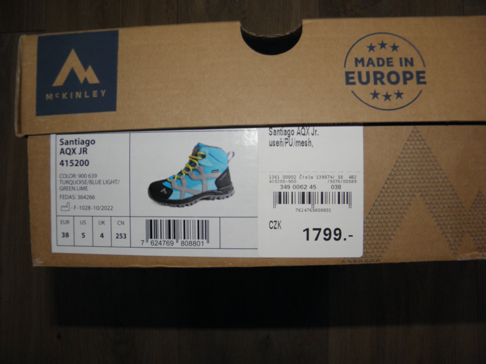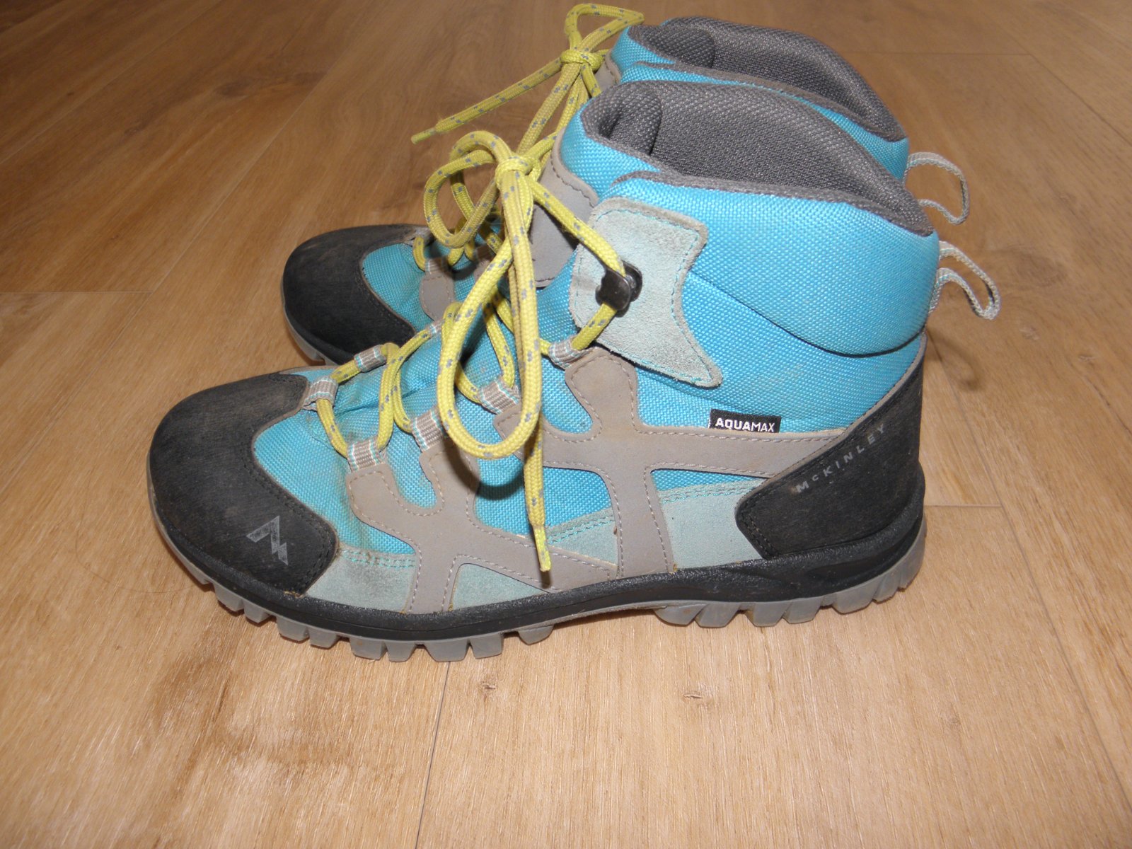 Prodám dětské trekové boty zn. McKINLEY Santiago AQX vel.38. Membrána Aquamax odpuzuje vodu, a zároveň je prodyšná vůči potu. Vyztužená pata a špička ochrání vůči vnějším nárazům. Boty byly obuty max. 10x. Boty mají běžné známky nošení ( ušpinění, škrábaneček ), jinak jsou zcela v pořádku. Děti je mají už v několikáté velikosti a jsou spokojené.