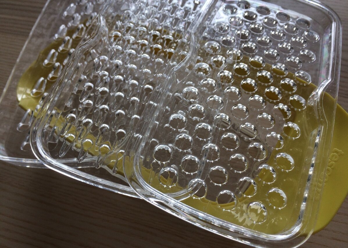 vyrobeno z odolného plastu, součástí struhadla je praktická miska, která bezpečně zachytí nastrouhané potraviny, 3 nástavce součástí balení