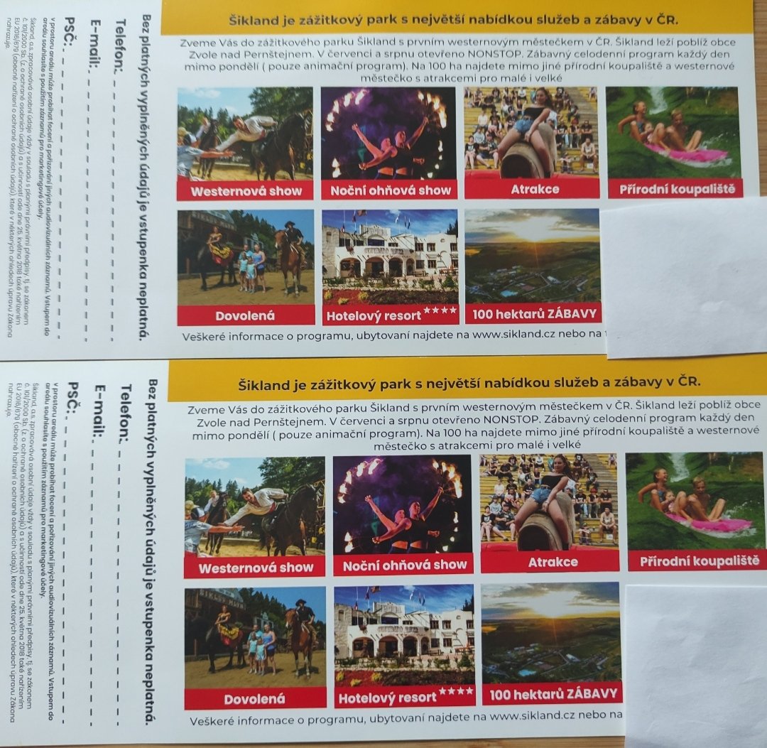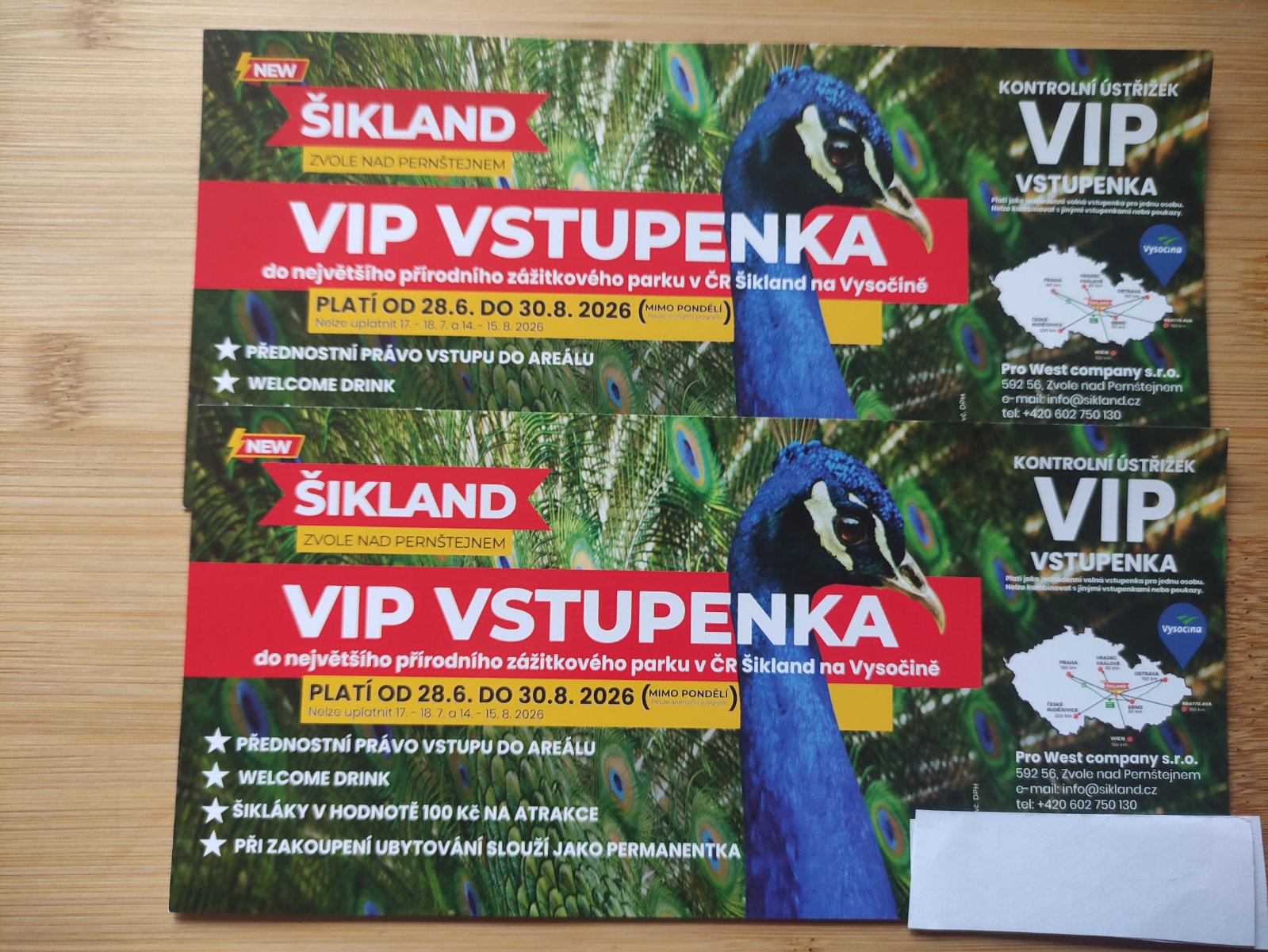Vip vstupenky -2 ks Zábavný park ŠIKLAND
