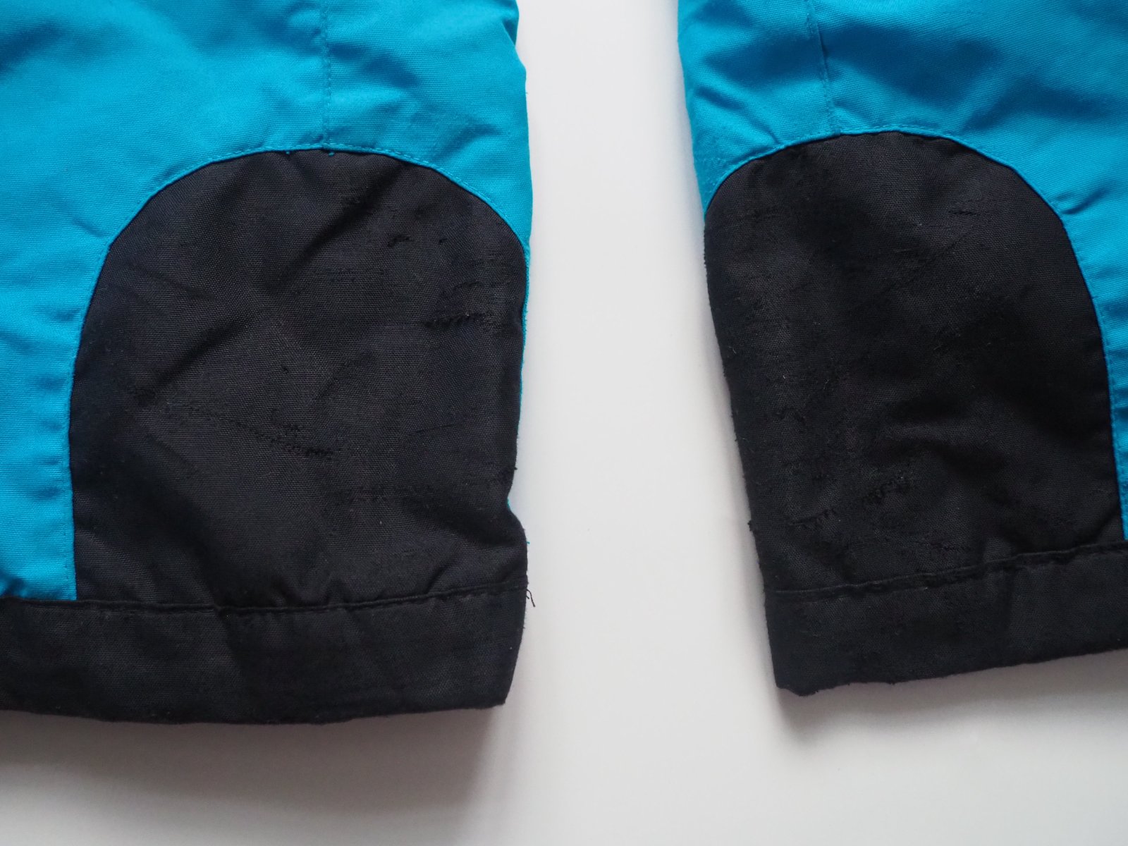 Dobrý stav - hodně nošené mají různé nedostatky - dírky na konci nohavic, cvoček v pase nejde zapnout. Nepromoknou. Jsou vhodné na donošení.