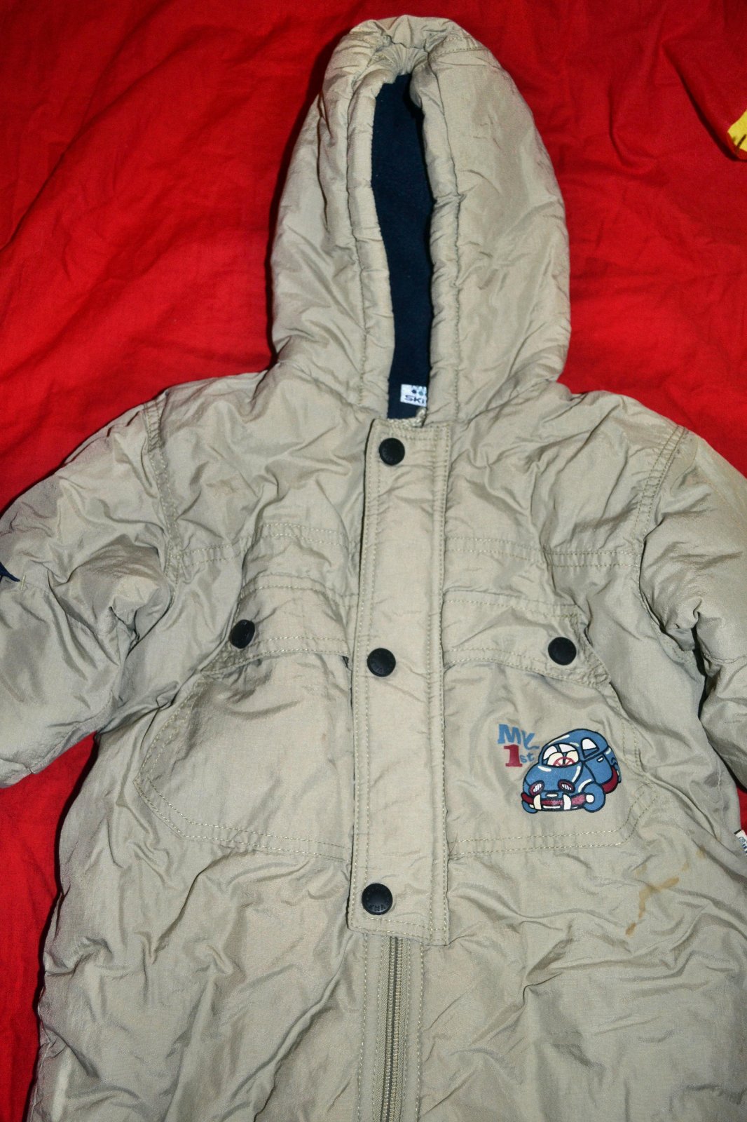 pěkně silná zimní kombinéza s autem+ rukavice,v nohavcích ochrana proti sněhu,pohodlná,rozepínání zipu až dozadu,super na přebalování