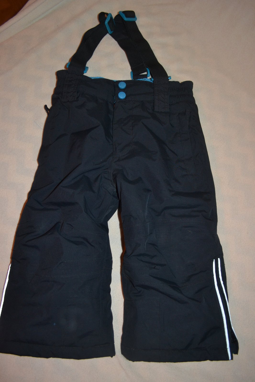 praktické oteplovačky: černé-kvalitní oteplovačky v.92-kolem 18 měs.,nastavitelné šle,kapsy na zipy,dole nohavice na zip a uvnitř ochrana proti sněhu,délka od pasu 52cm,nepromokavé,reflexní pezpečnostní prvky,široké-pohodlné, 1x použité,100% stav