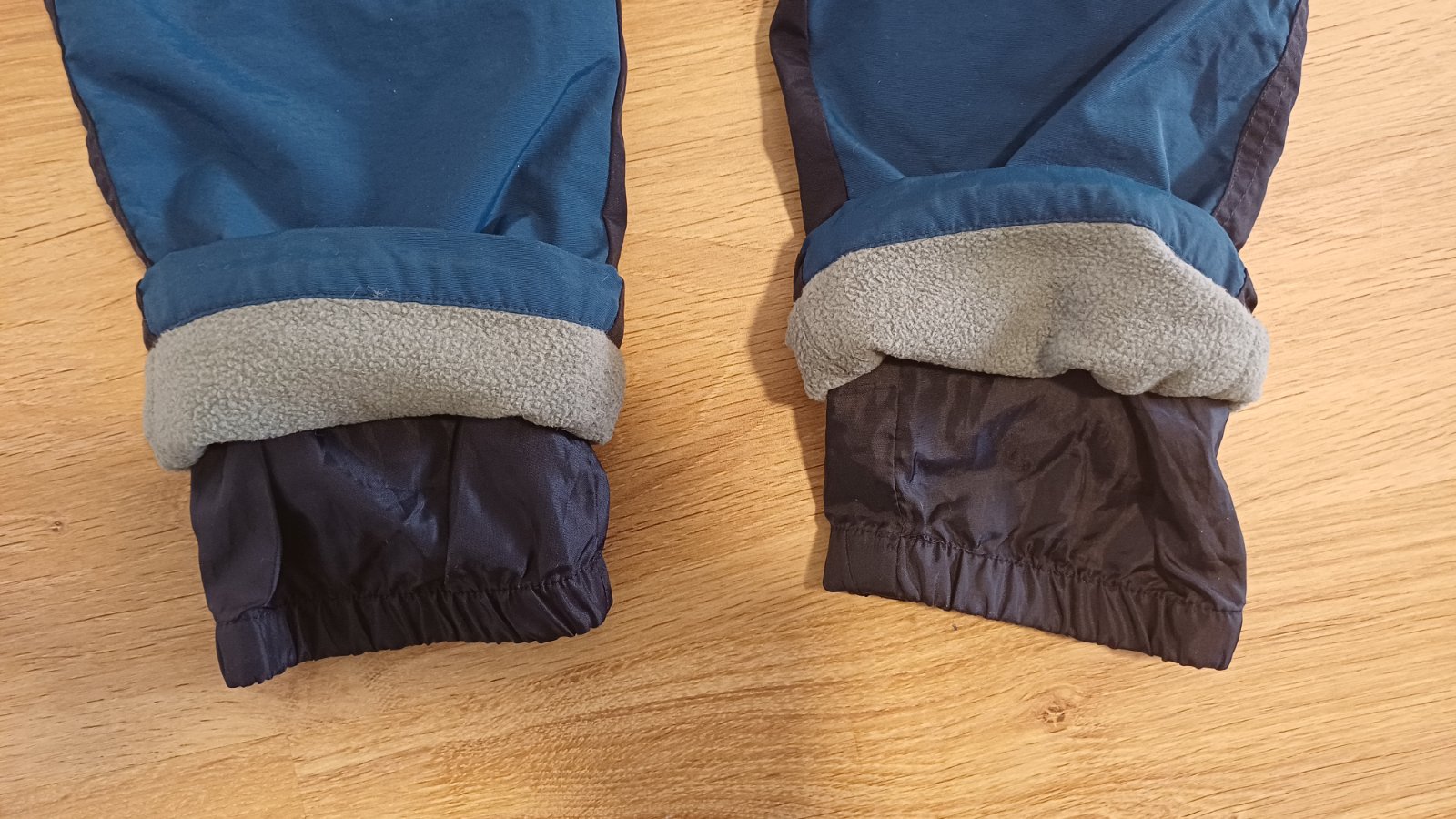 Moc pekne, zachovale, sustakove, bez vady. Kupovane nove. Vodeodolne. Podsivka fleece. V pase snurka funkcni, v nohavicich naplety proti snehu. Malinko slouply obrazek. Delka 84, vnitrni 58, pas v klidu 26.