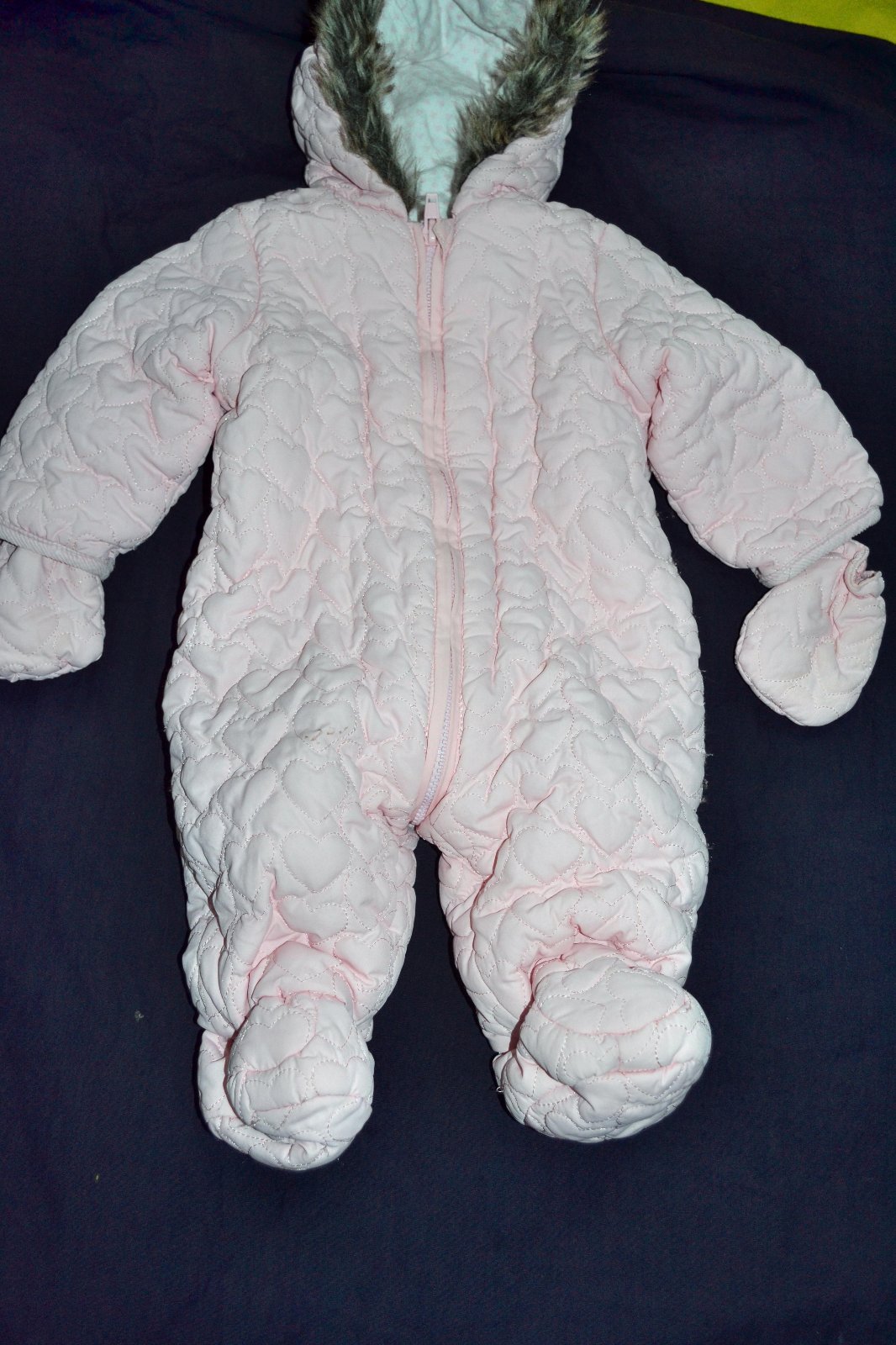 kvalitní značková zimní kombinéza dívčí + rukavičky,uvnitř měkké příjemné fleece,0-3 měs.