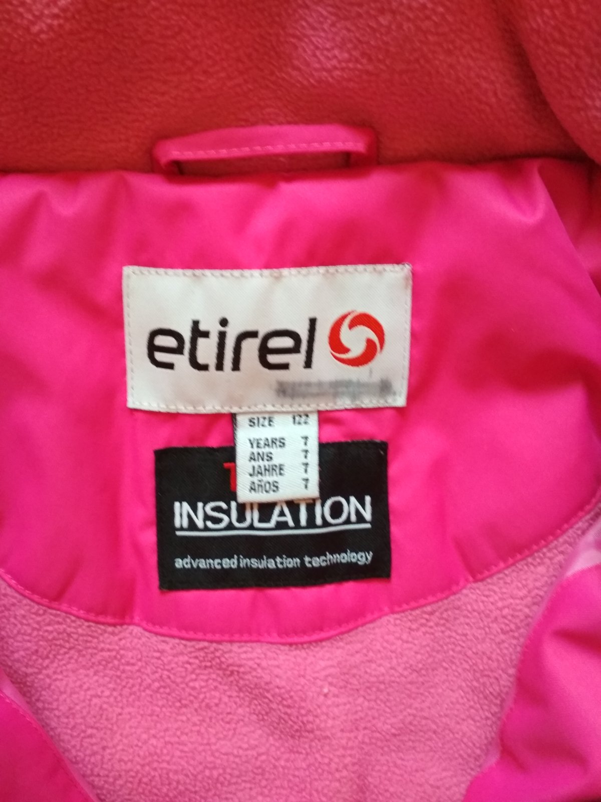 Prodám zimní kombinézu, vel. 110, značka Etirel. Rozměry: celk. délka od krku 99 cm , délka rukávu od krku 48 cm, od krku do rozkroku 58 cm, délka vnitřní nohavice 41 cm. Vady: dolní část nohavic...