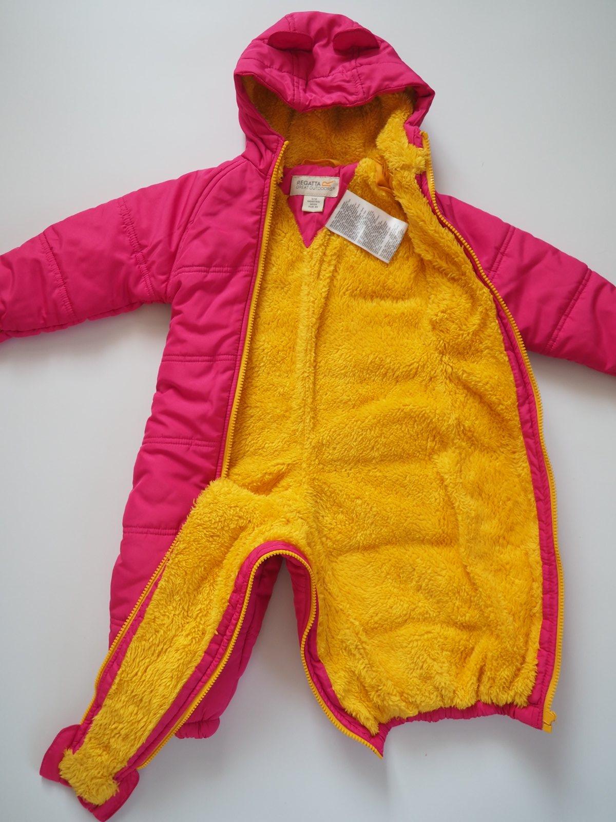 Teplá zimní kombinéza s rukavicemi, zateplená kožíškem.