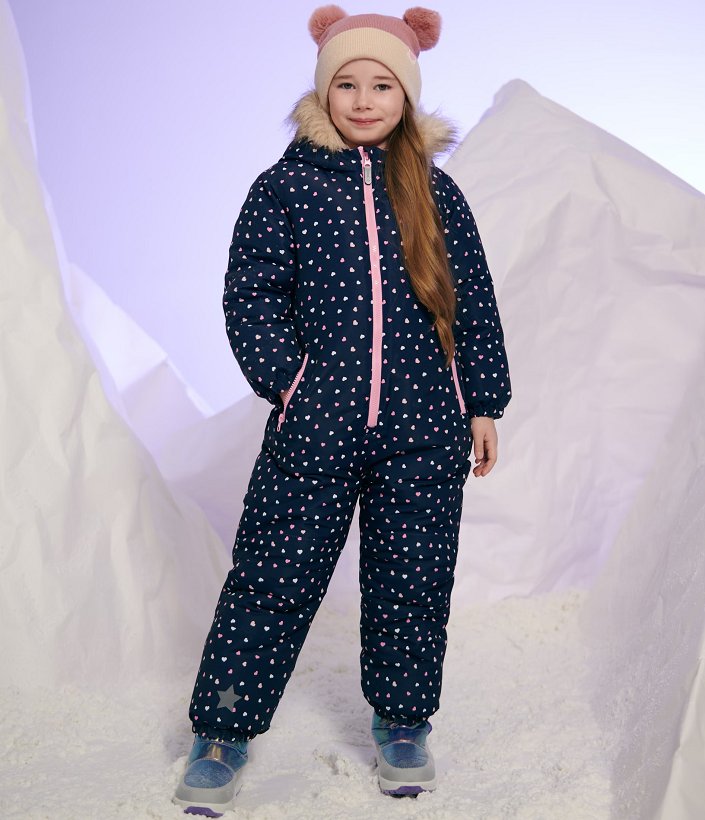 SKLADEM POSLEDNÍ ! Krásná holčičí tmavá zimní kombinéza se srdíčky ♥