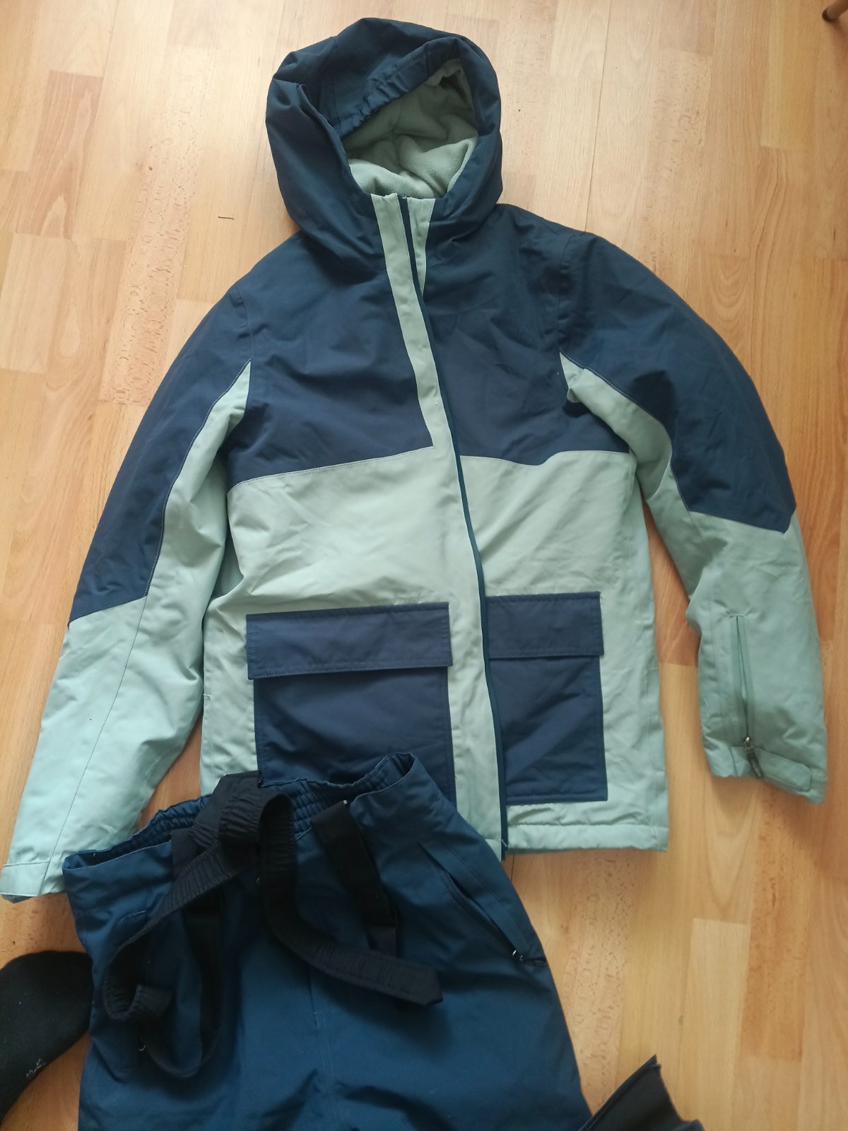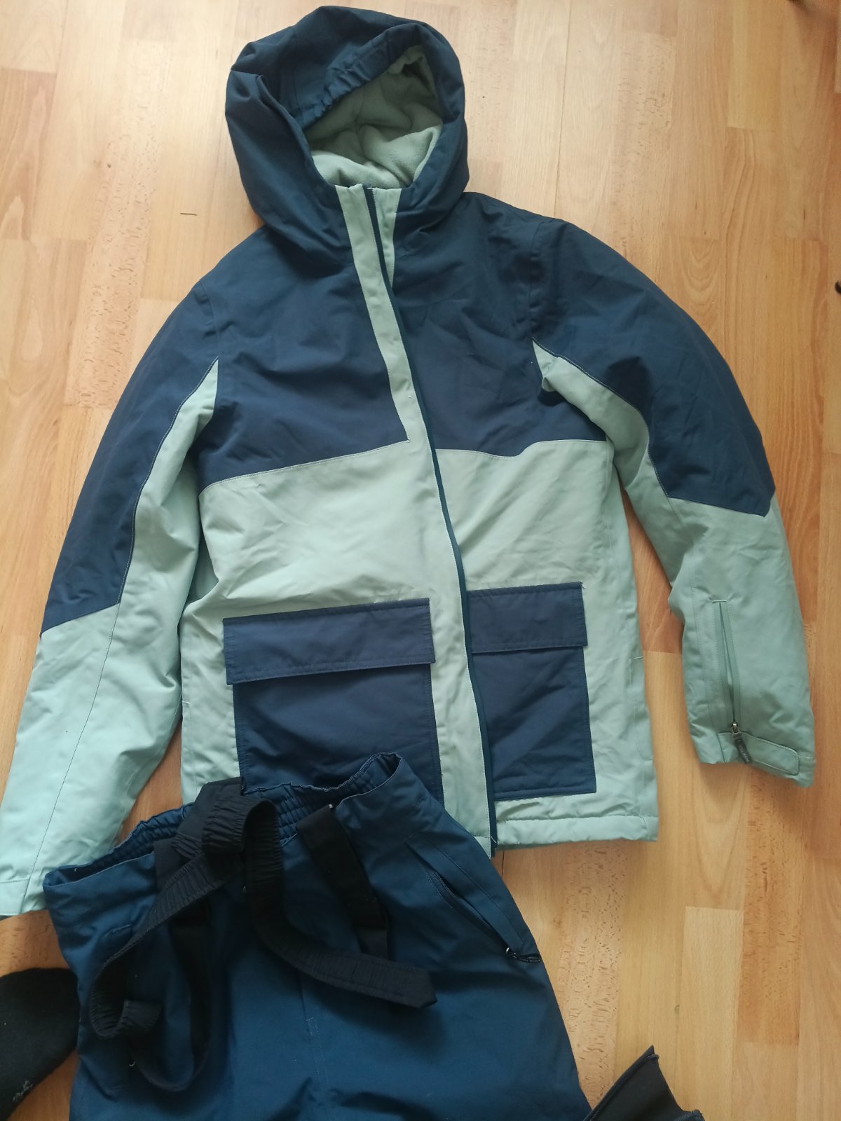 Lyžařská bunda vel.152/158, kalhoty Loap vel.152( dají se nosit déle,syn nosil při stejné velikosti). U bundy zpuchřelé gumičky dole na utahování jinak top stav. Na jednom kolínku pídi dírka, jinak...