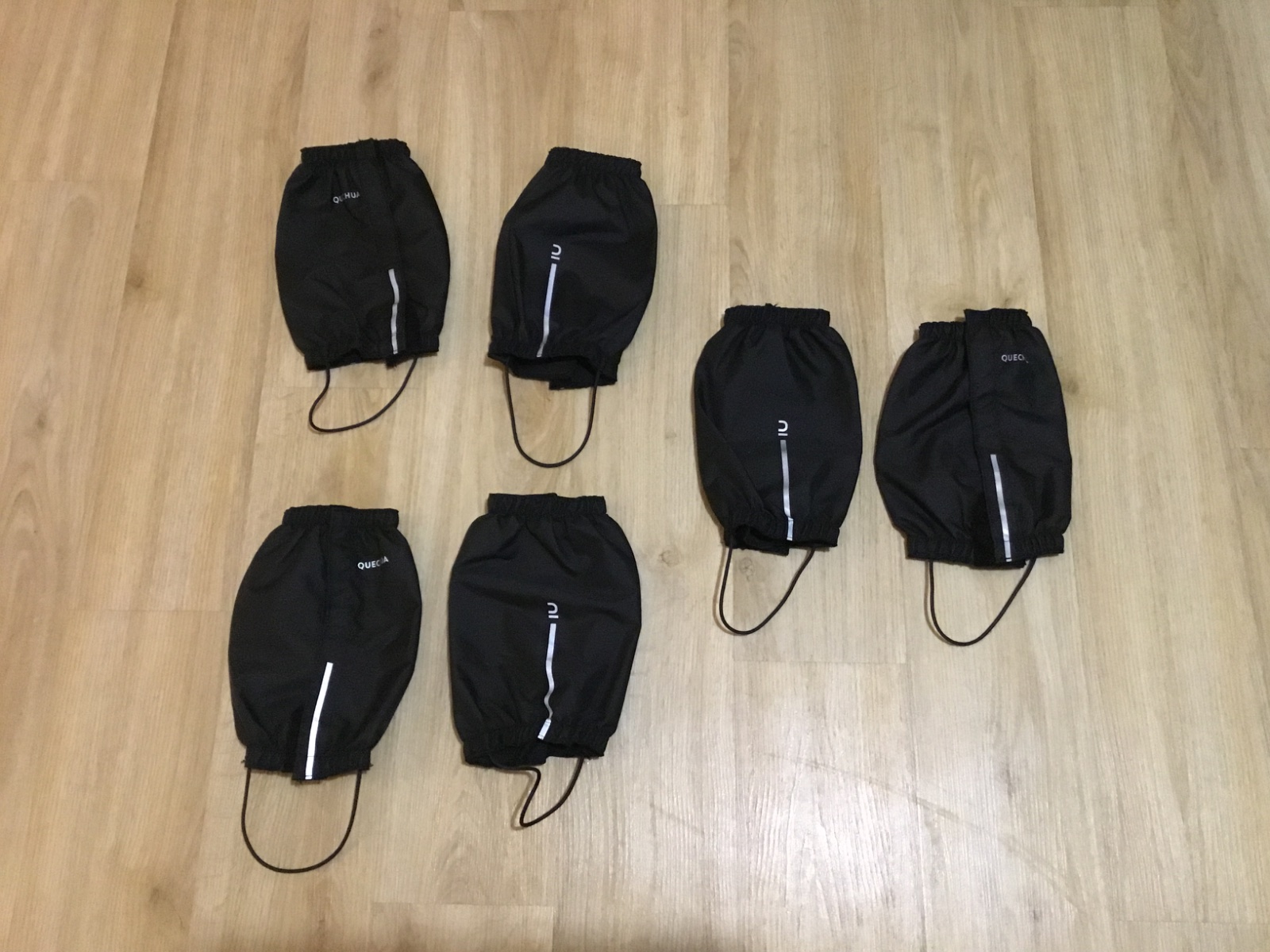 3 sady dětských turistických návleků ve velmi dobrém stavu, koupené v Decathlonu loni ke konci zimy. Použité jen dvakrát na sněhu. Doporučuji pro věk 3-6 let, pak už dětem škrtí přes oteplováky na lýtku. PC jedné sady 249 Kč. Cena za jednu sadu 140 Kč.