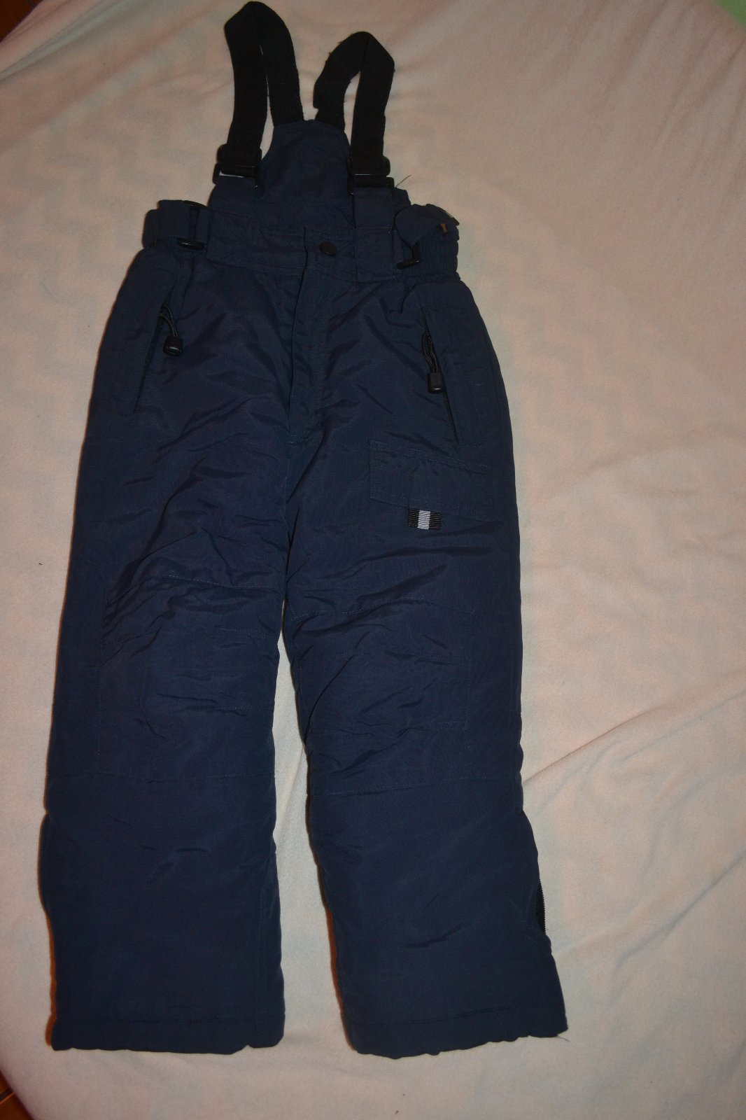 kvalitní velmi teplé oteplovačky v.98,nastavitelné a odnímatelné šle,nastavitelný pas podle potřeby,kapsy na zipy,v nohavicích ochrana proti sněhu+ na boku na zipy,délka od pasu 63cm,velmi praktické ,dobrý střih,výborný stav-téměř nenošené