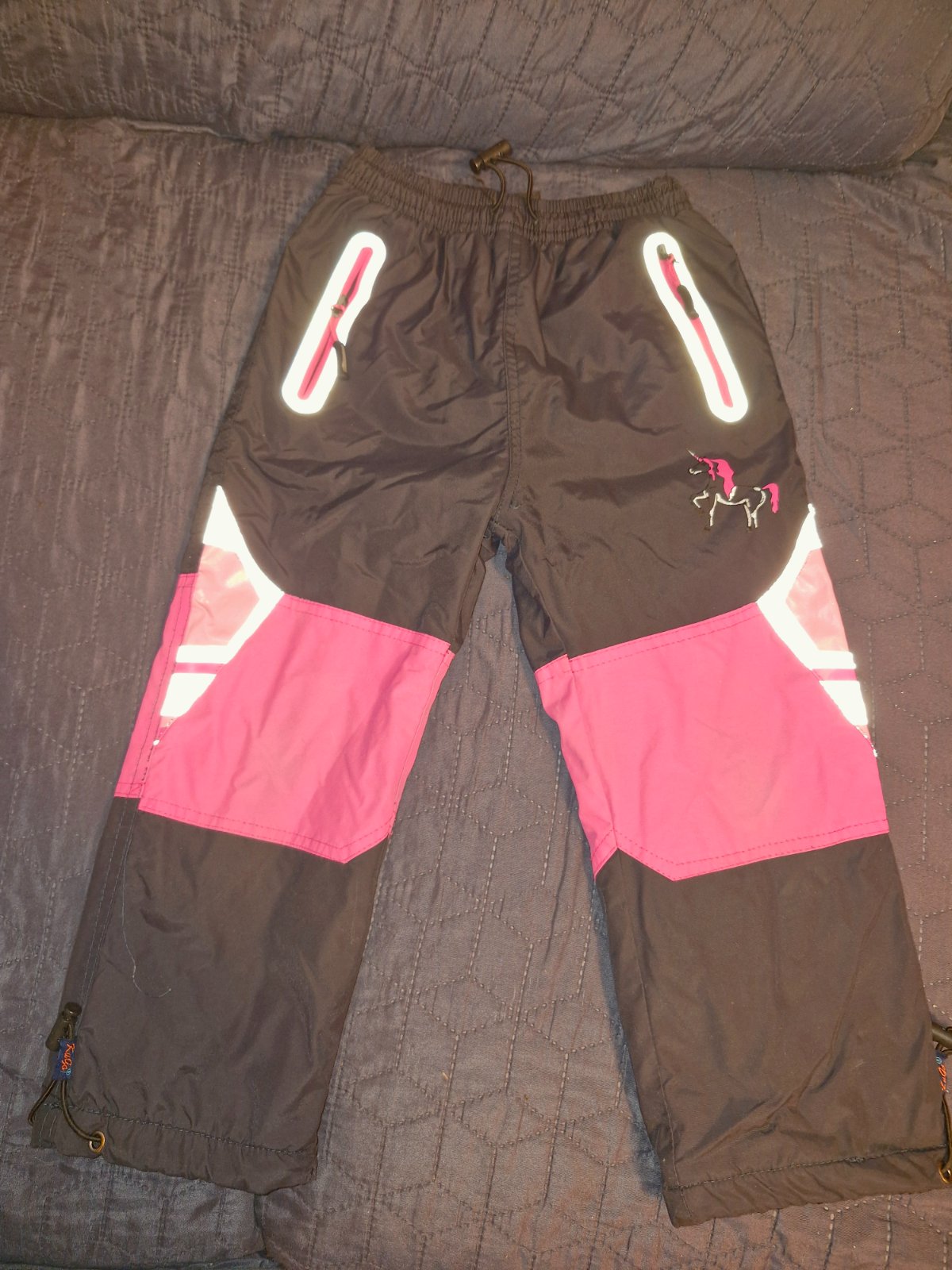Prodám zimní růžové zateplené kalhoty značky Kugo ve velikosti 104. V pase na gumu, reflexní prvky, nohavice na stáhnutí, dvě kapsy (jedna s nefunkčním zipem). Jinak v super stavu.