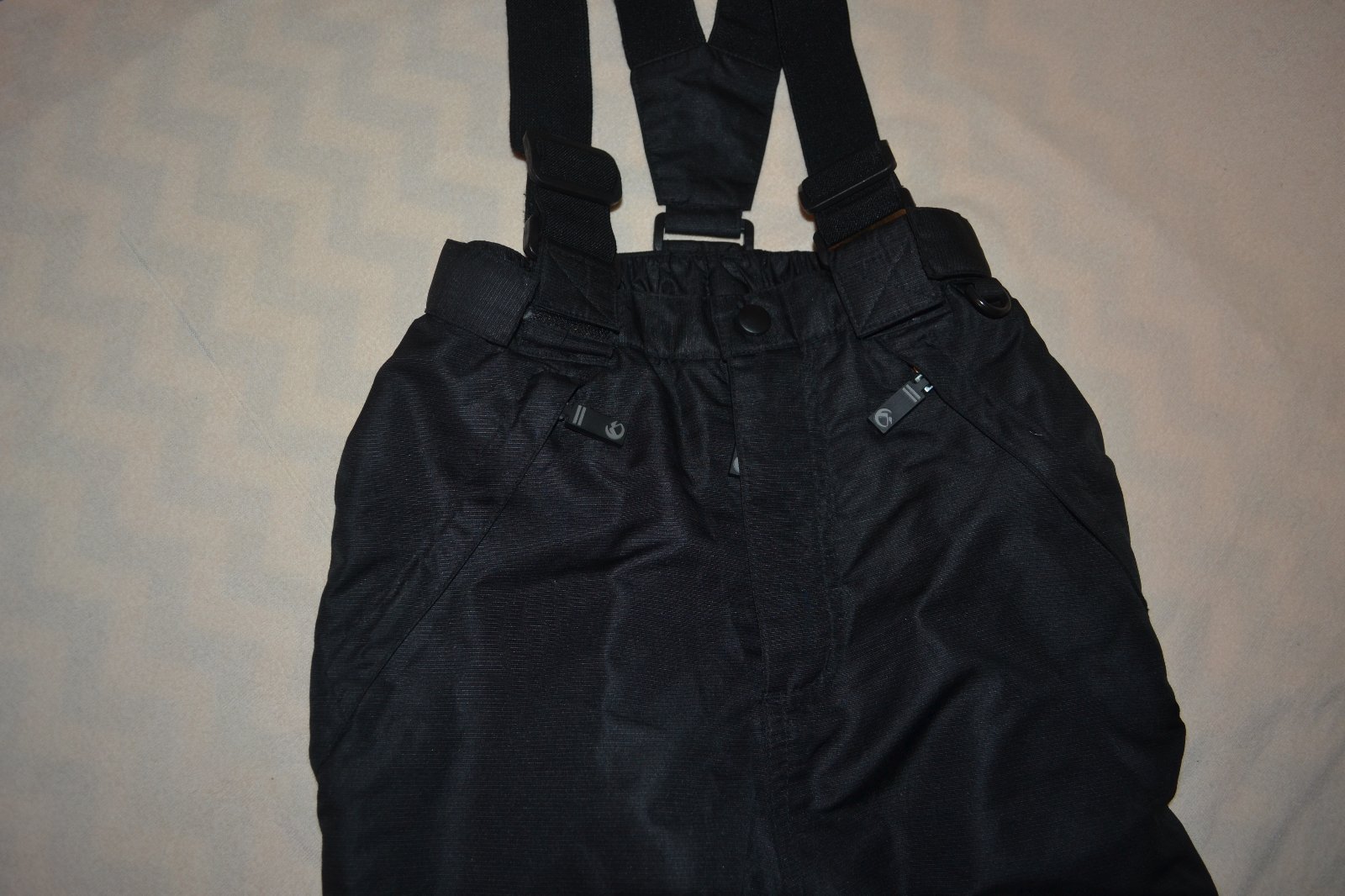 kvalitní moderní oteplovačky na 6-7 let,.122,nepromokavé,mají nastavitelné a odnímatelné šle, ,dole v nohavicích je ochrana proti sněhu a vodě, kapsy na zipy, nastavitelná velikost pasu,od pasu 72cm,pohodlné , skvělý stav,téměř nepoužité,