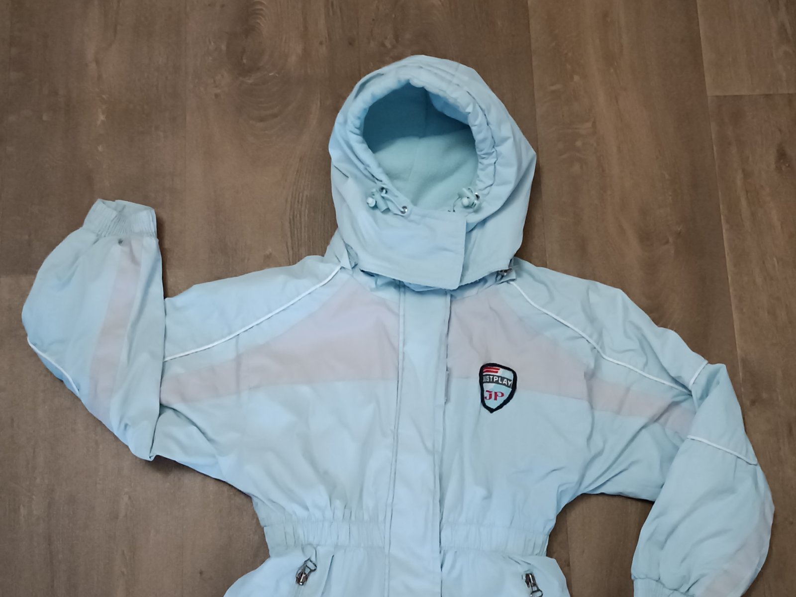 Nabízím dětskou lyžařskou kombinézu, zn. Just play, vel. 128/134 v bledě modré barvě v kombinaci se světle šedivou. Kapuci lze sundat (zip) + regulace - viz foto. V pase na gumu, rukávy lze stáhnout suchým zipem, zapínání na zip+ suchý zip, v přední části 2 funkční kapsy na zip, materiál: 100% polyester. Velikost odpovídá, pěkný stav.