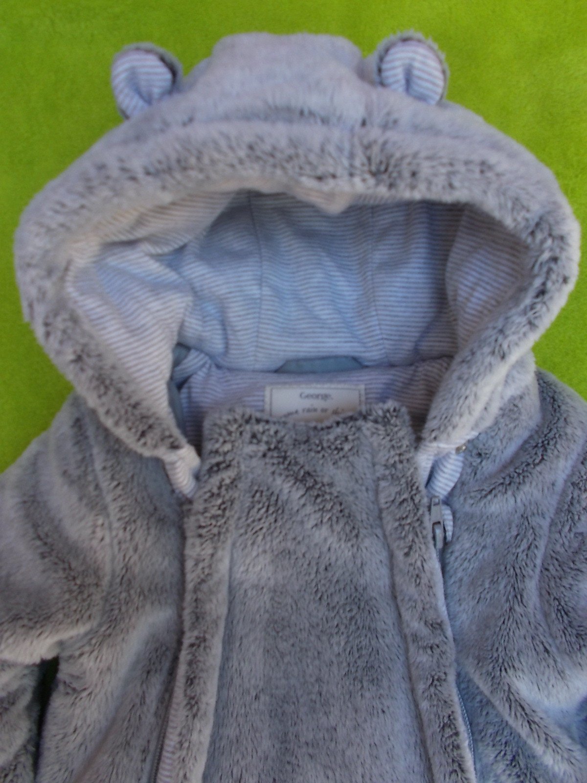 Nádherná měkkoučká zimní medvídková kombinézka v super stavu. Je chlupatková, huňatá, teplá. Unisex - šedá barva, vhodná pro kluky i holčičky. Podšitá proužkovanou bavlnou. Praktické ohrnovací rukavičky, na kapuci roztomilá ouška. Zapínání na dva zipy až dolů do obou nohaviček - dobře se do kombinézy obléká. Roztomilé zvířecí tlapky.