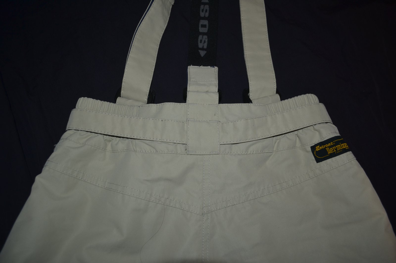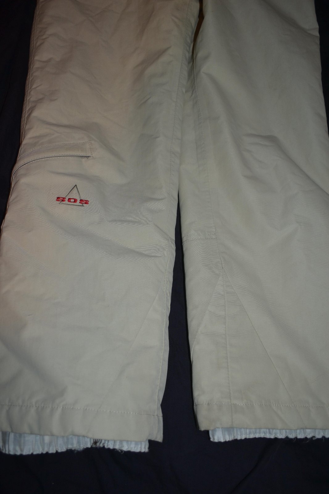 kvalitní lyžařské,snowboardové kalhoty v.38, nepromokavé,silné,kapsy na zipy, pas regulovaný páskem,šle nastavitelné a odnímatelné,v nohavicích ochrana proti sněhu + na boku zipy,,praktické, pas do 83cm,délka 105cm,skvělý stav