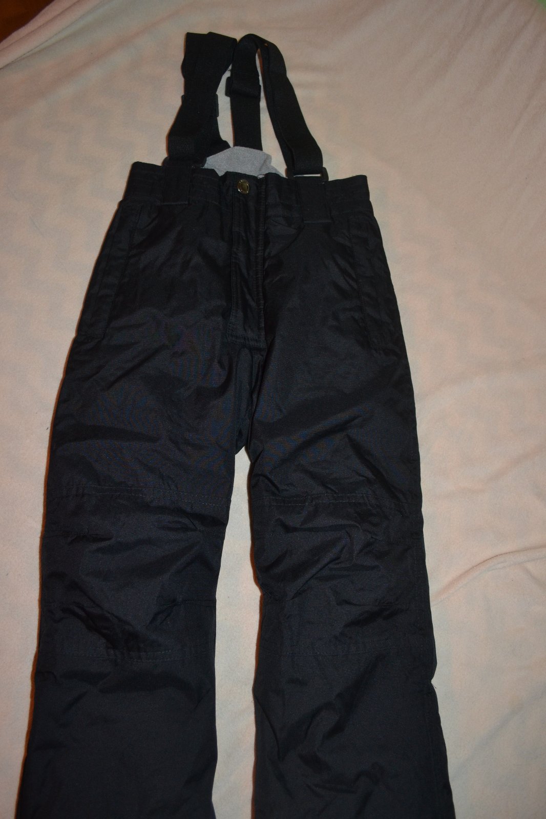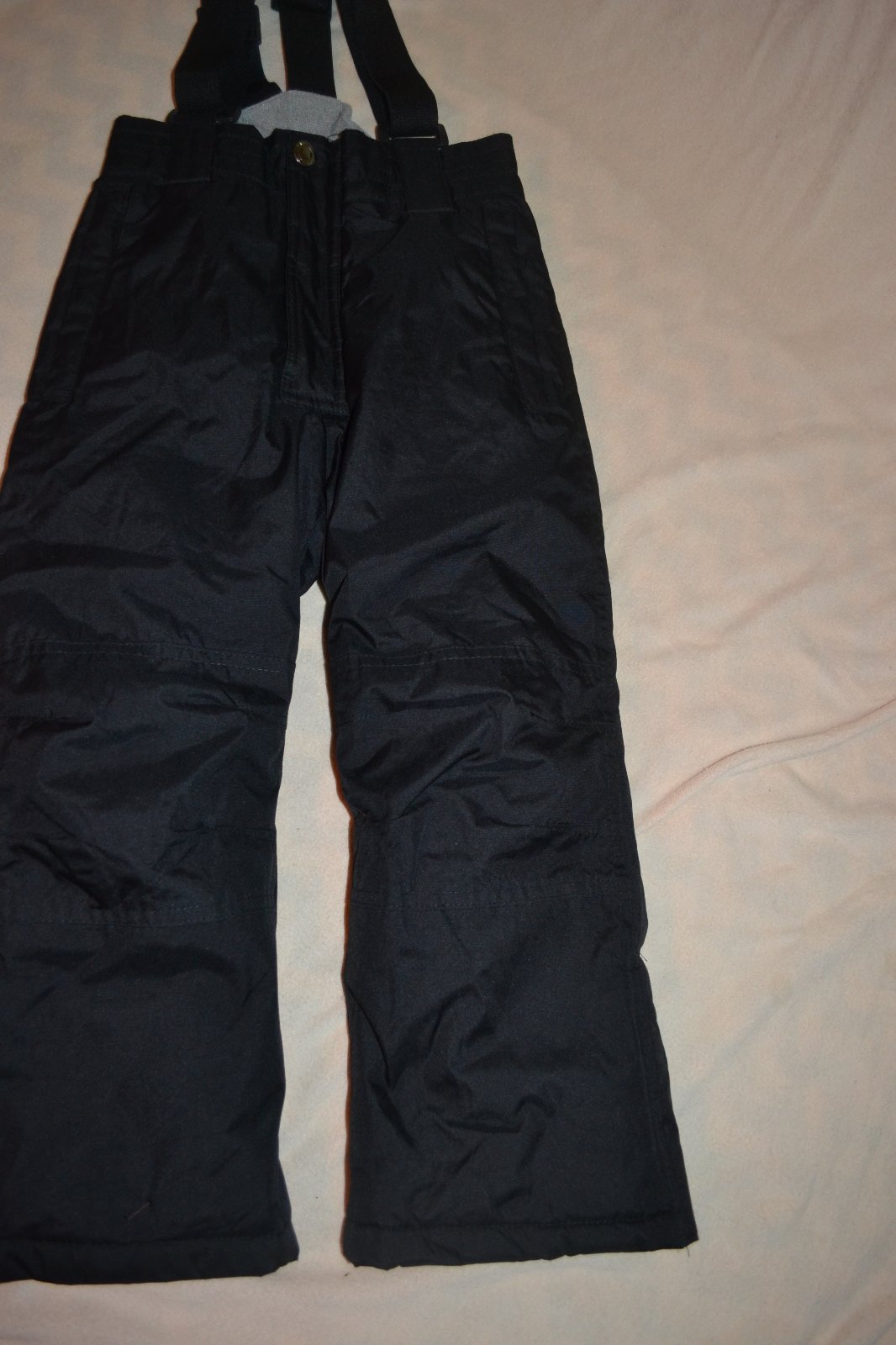 praktické nepromokavé v.110,délka 68 od pasu ,nastavitelné šle,kapsy na zipy,v nohavicích ochrana proti sněhu na zipy,hodně teplé,dobrý stav