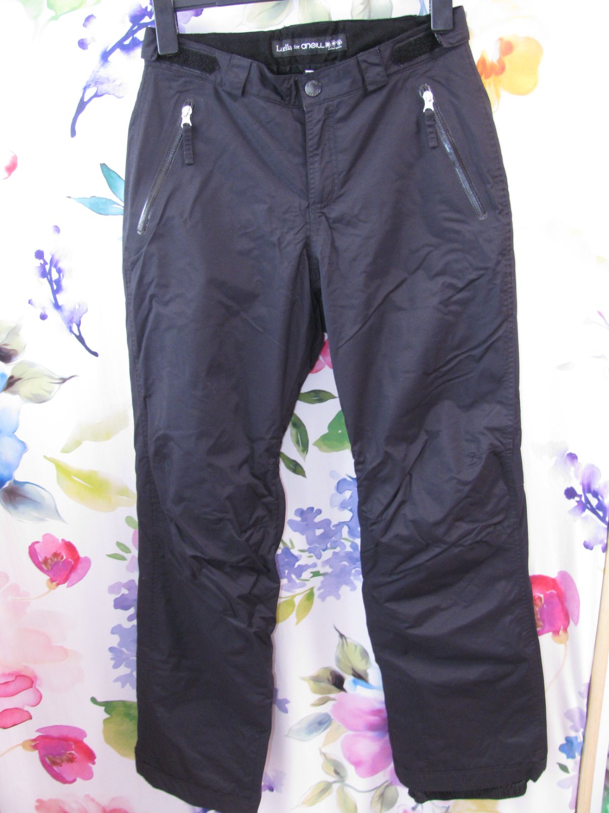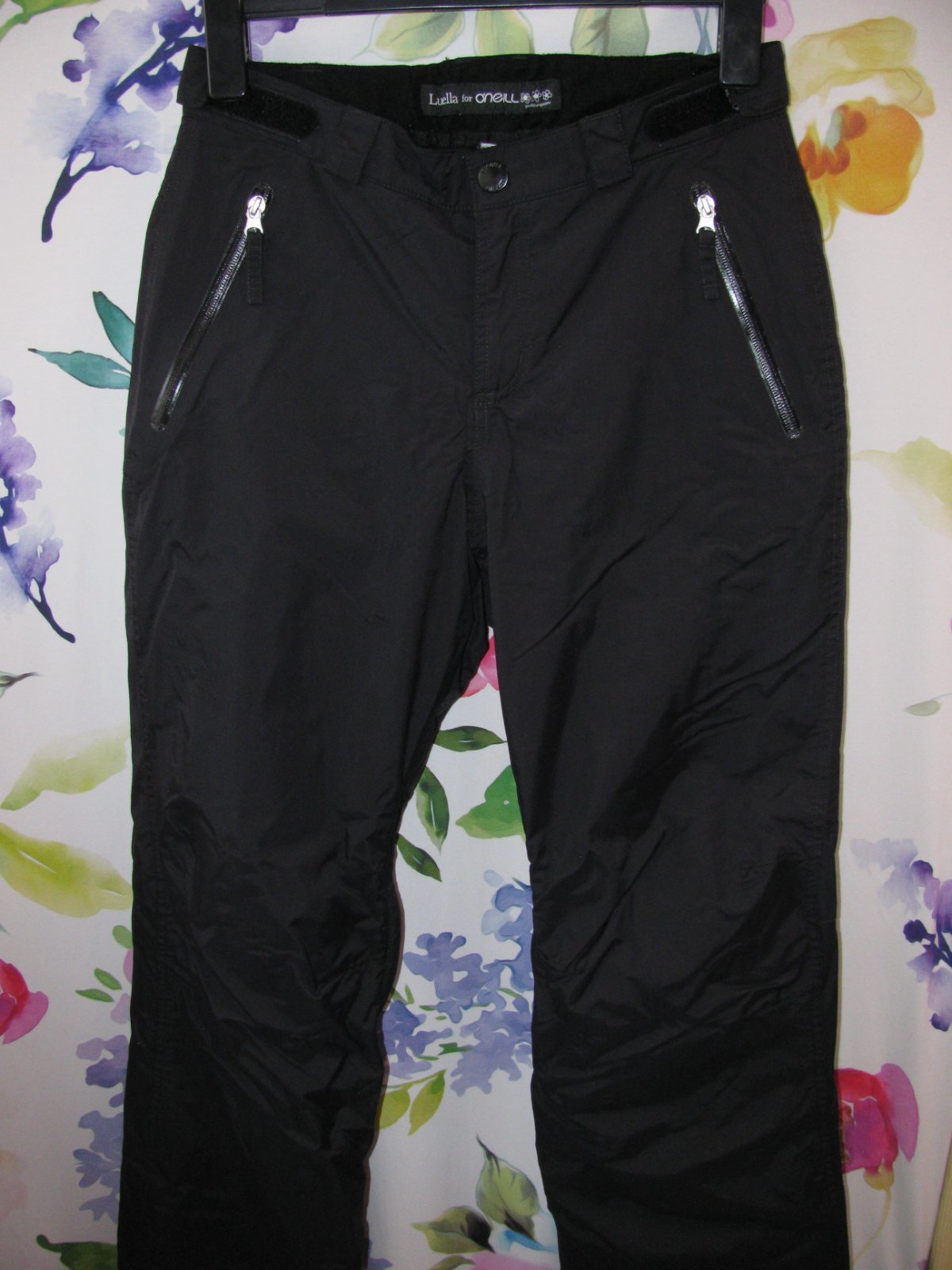 Krásné černé lyžařské kalhoty, oteplováky, spousta kapes na zip, zap. na druk a zip, v pase regulace na suché zipy, konce nohavic sněhová zábrana, hřejivá podšívka, vyšité logo. 100% polyamid, 100% polyester. Malý otěr na konci nohavic-viz foto, upozorňuji pro pořádek, jinak krásný stav, bez jiných vad.