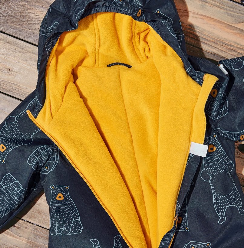 Mikrofleecová podšívka (uvnitř kapuce a na těle) … jinak podšívka z taftu (v rukávech a spodní části nohavic) kvůli snadnějšímu oblékání.