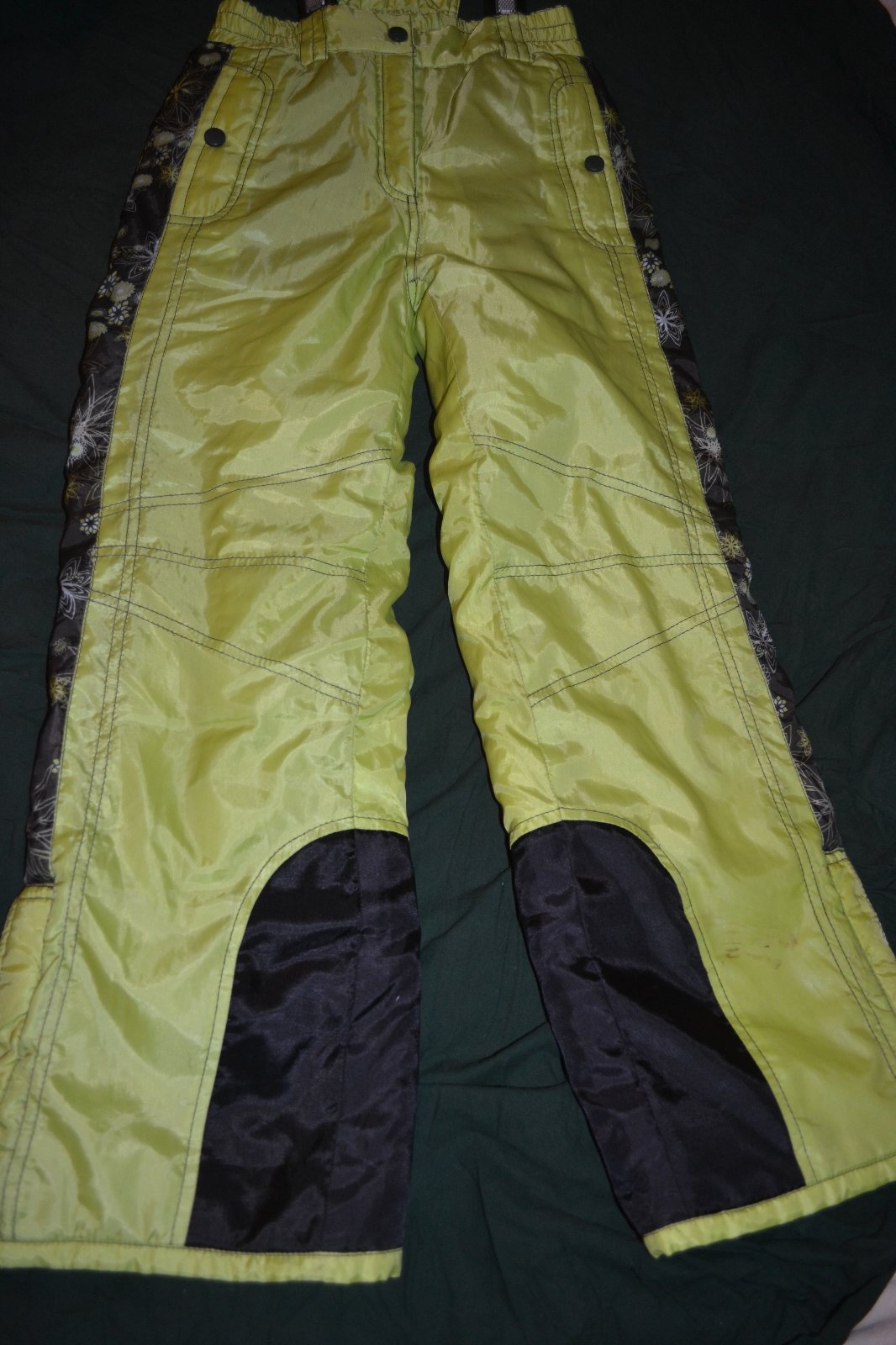 výborné oteplovačky v.140,nastavitelné šle, dole v nohavicích ochrana proti sněhu a vodě + na zipy,délka 89cm,stav perfektní, pouze jedno ušpinění na nohavici dole, téměř nepoužité