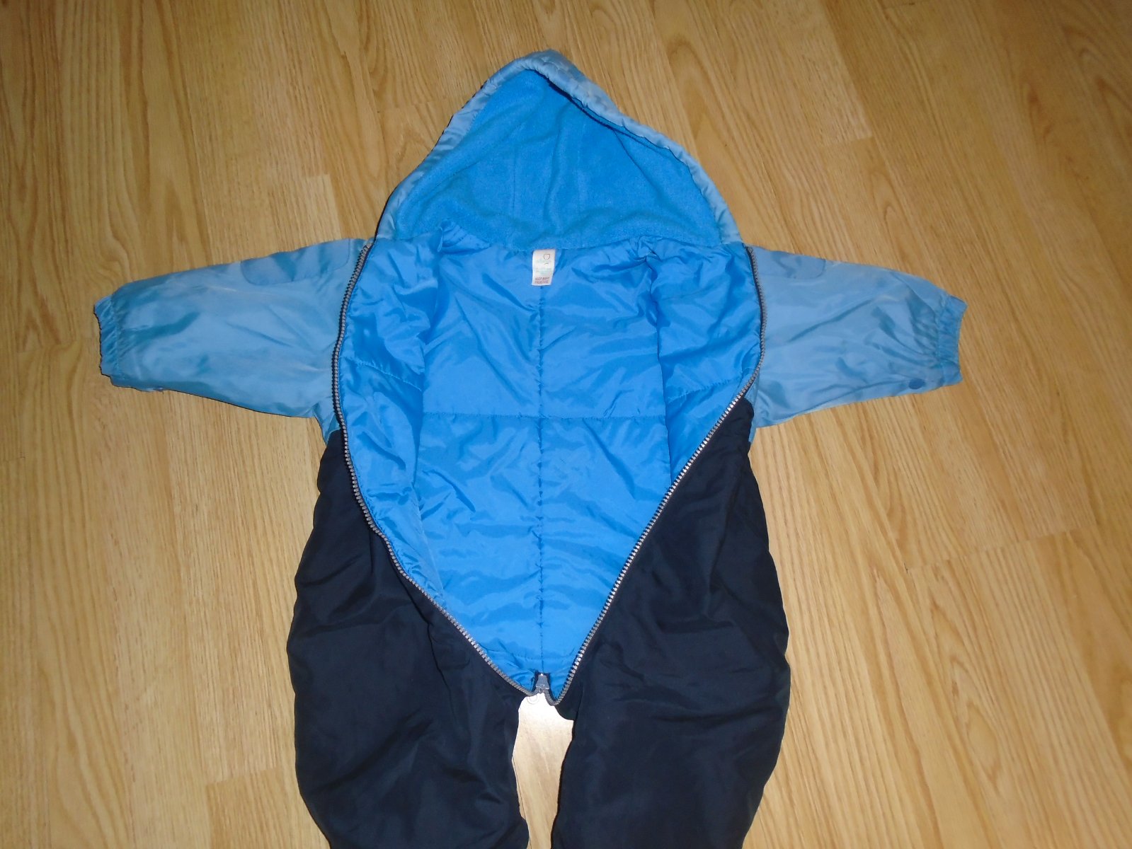 Tm. modrá kombinéza. Podšitá flees + šusťák. Top stav, málo nošené, bez vad. CELK. DÉLKA : 75cm PŘES PRSA: 2x 30cm D. ZD OD KRKU K ROZKROKU: 49cm D. RUKÁVU OD KRKU: 35cm 251820
