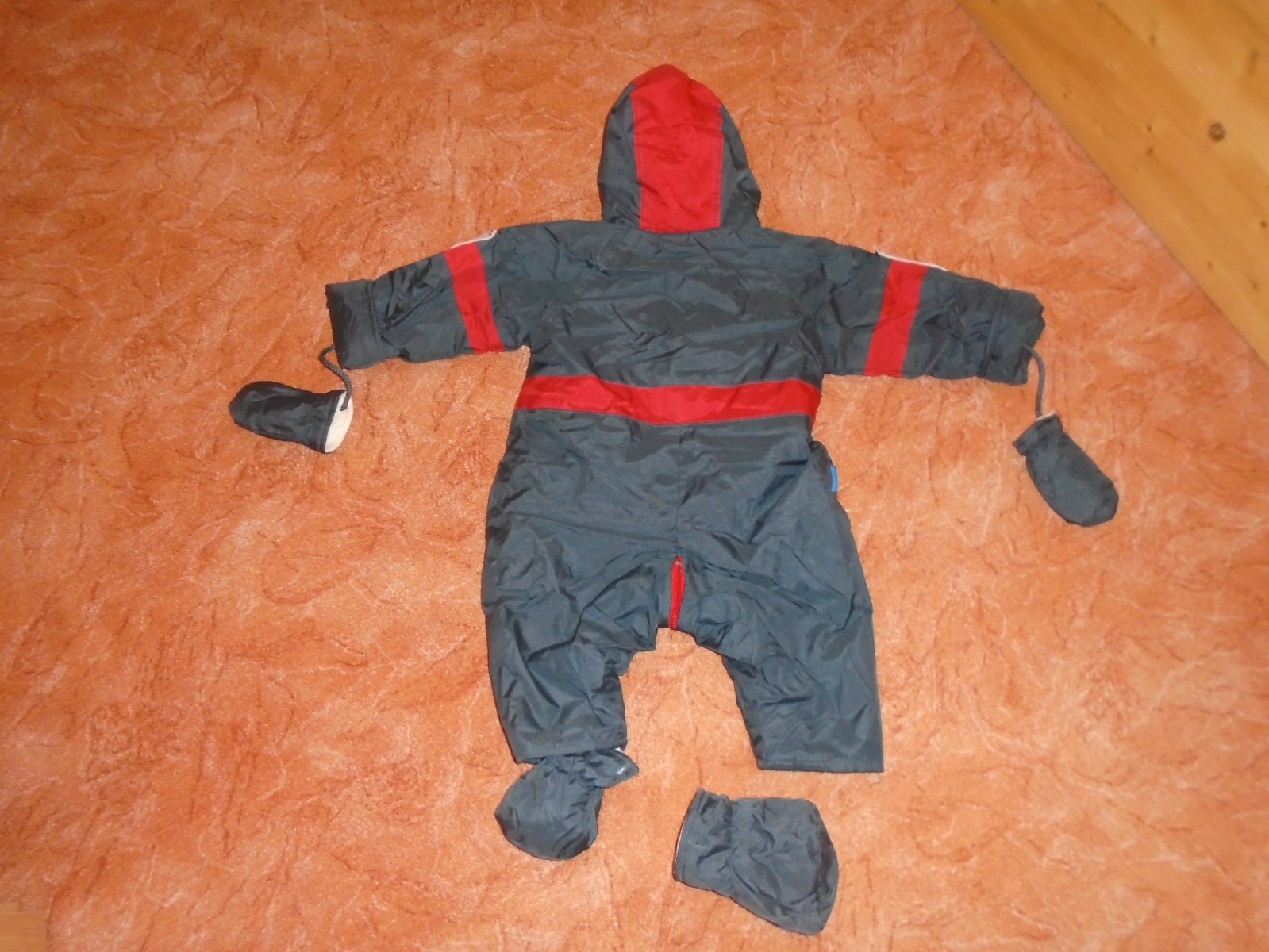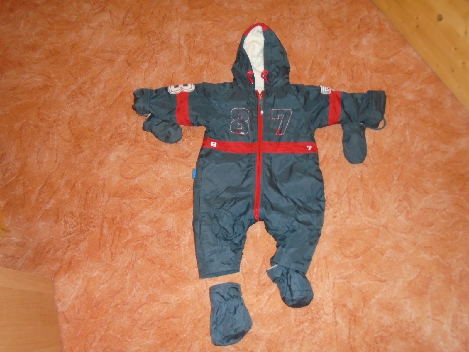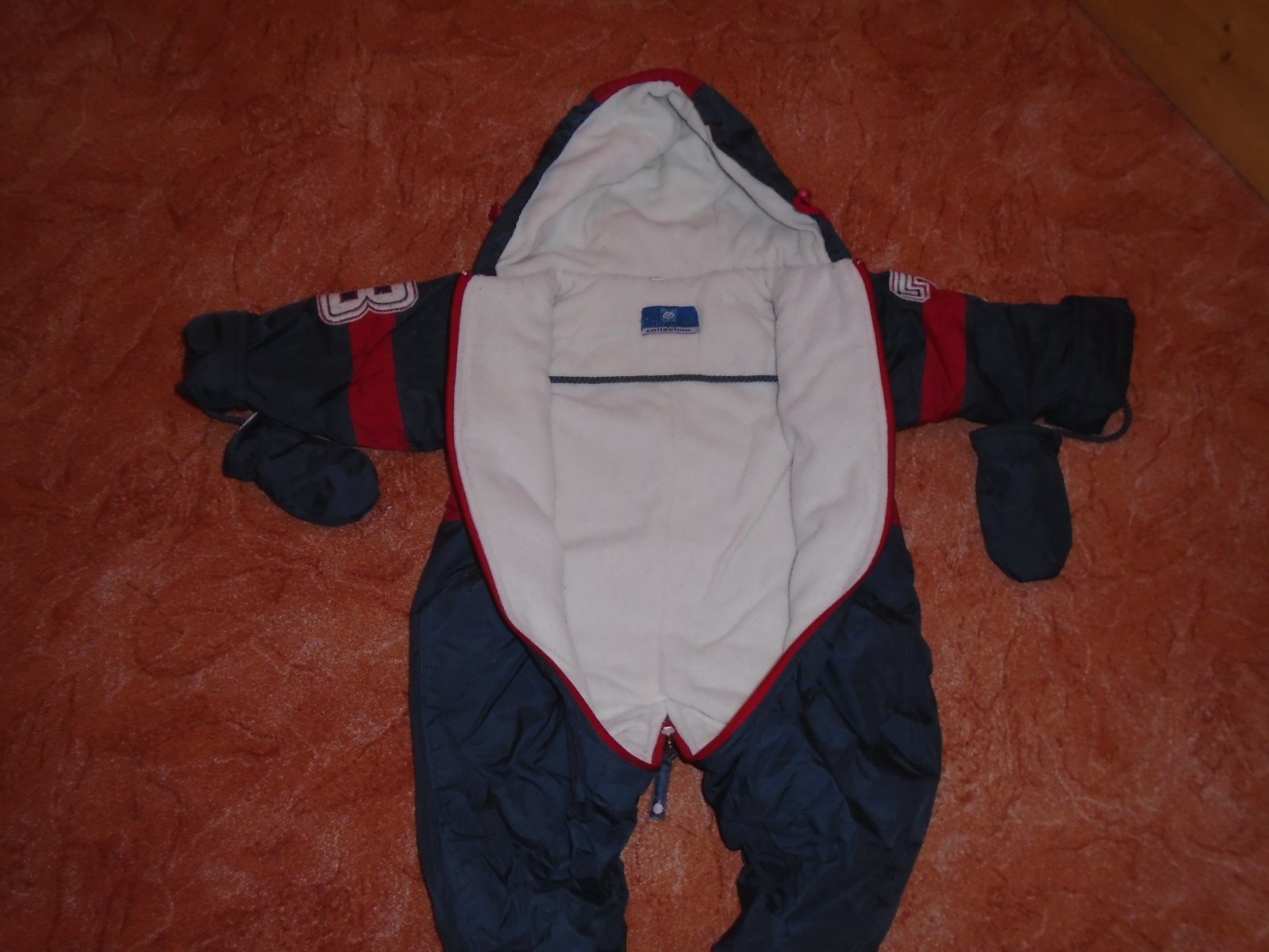 V bezva stavu polyesterová, prošívaná, slabší kombinézka vhodná již na podzim, nebo později do fusaku, krásně rozpínací, snadné vkládání mimča, barvičkao něco tmavší, než na fotu, uvnitř, mimo ruká...