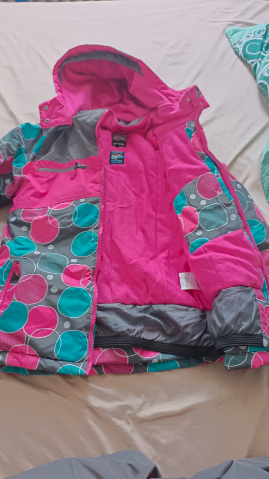 hezké Bunda Envy, vel. 158, hezká, nepromokavá, 10000 mm sloupec, kapsička na čip, sněžný pás délka 60/64cm, rukáv od kapuce 71cm Oteplovačky podšité flízem.Sytě růžová(malinová) s černou.Párkrát ...