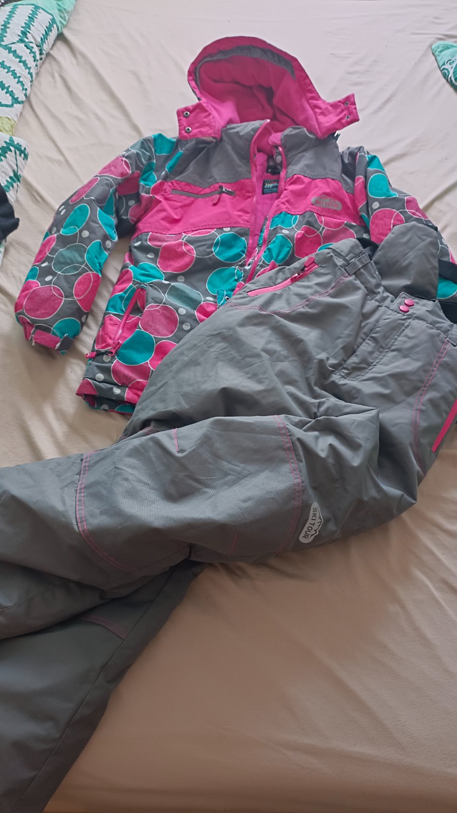 Bunda nošená se zimními kalhotami, i když není komplet. Lze prodat i zvlášť. Na bundě kapsa na permici, vnitrni kapsa na bryle a kapsicka na zip. Bunda 300,- Kalhoty 300,-