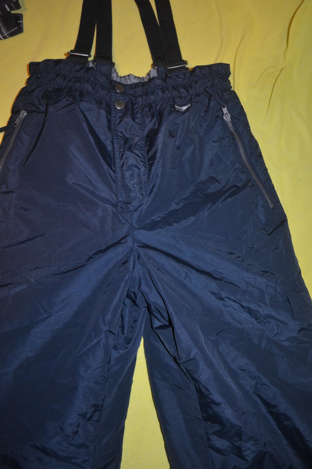 lyžařské,snowboardové kalhoty Brugi, v.L, nepromokavé,silné,kapsy na zipy, pas regulovaný ,šle nastavitelné a odnímatelné,v nohavicích ochrana proti sněhu + na boku zipy,,praktické, pas do 95cm,délka 111cm,stav perfektní,téměř nové