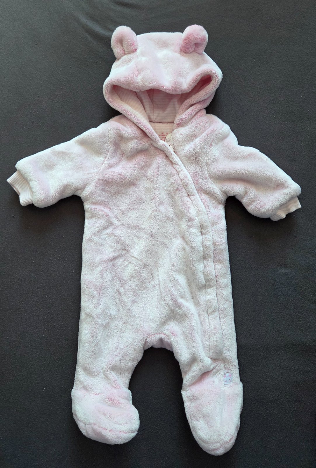 Nádherná kombinézka, bílá je bílá .V kapuci podšitá fleecem, po těle hladká látka ke snadnému oblečení dítěte. Součástí rukavičky . Bez vad, krásná. Vel.psaná 0-3m(62) nám už jako 62 ťip ťop, tudíž...