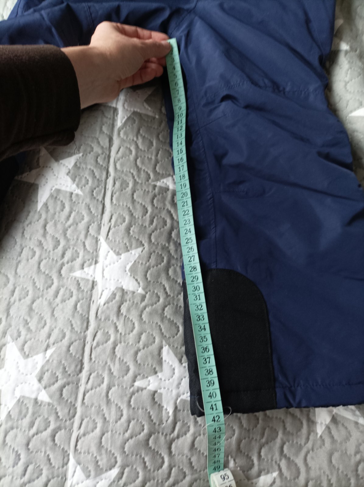 Délka nohavic z rozkroku 41 cm, délka nohavic z pasu 61 cm, šířka v pase 54 cm